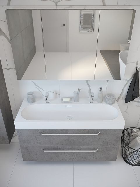 - Просторное хранение: Легкость в организации хранения: в ящиках шириной100 см с легкостью поместятся ванные принадлежности и аксессуары всей семьи. Ваша ванная комната всегда будет выглядеть опрятно и аккуратно.