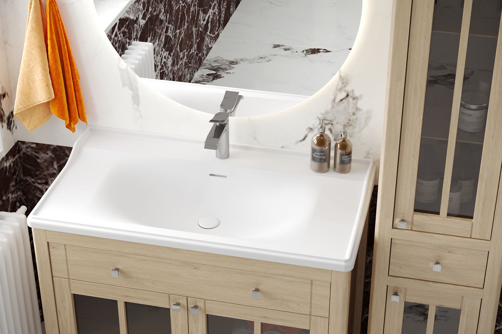- Материал умывальника: искусственный мрамор