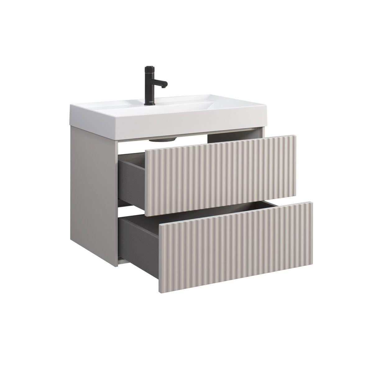 - Качество материалов: Мебель изготовлена из высококачественных водоотталкивающих материалов, что делает её идеальной для ванных комнат. Она устойчива к влаге и легка в уходе.
