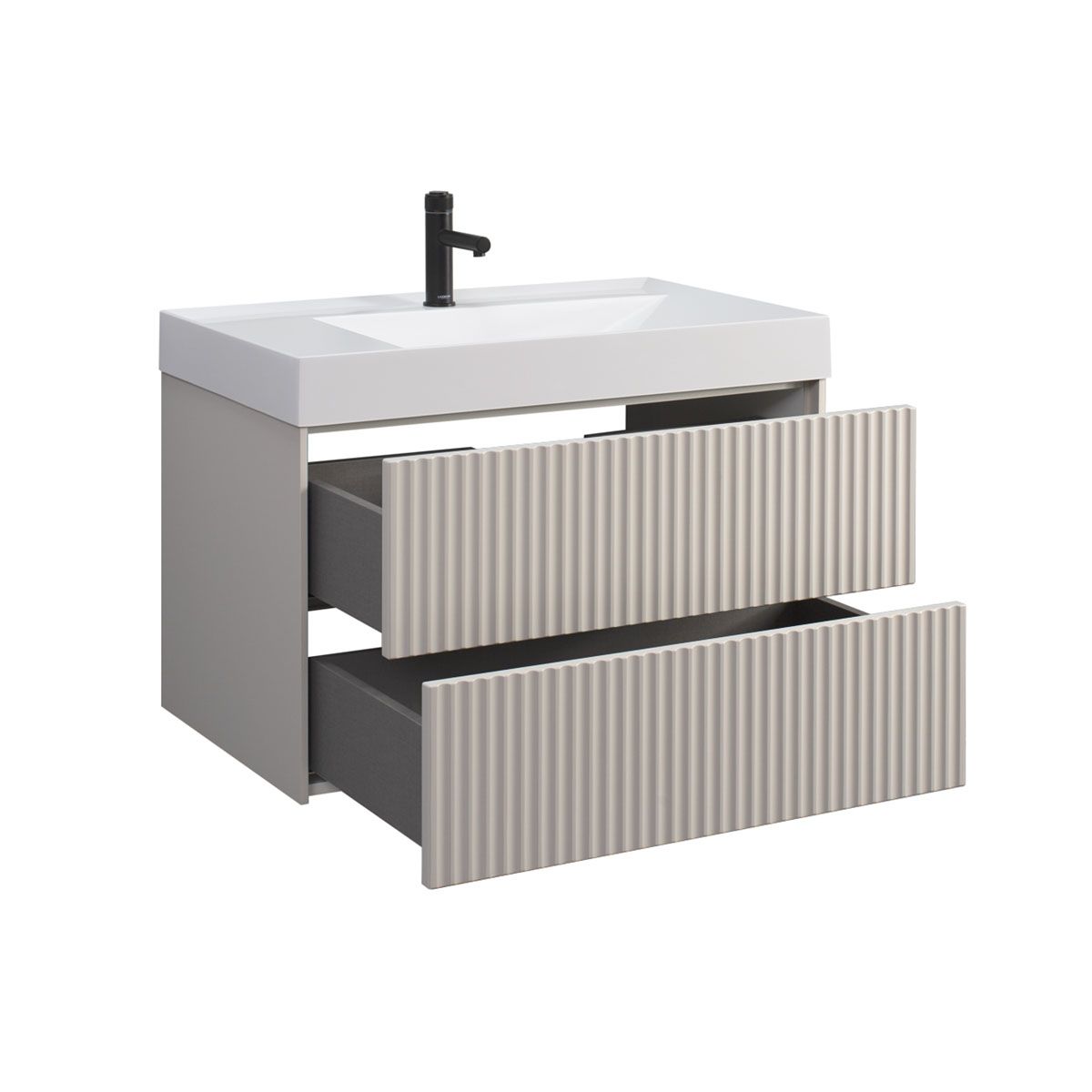 - Качество материалов: Мебель изготовлена из высококачественных водоотталкивающих материалов, что делает её идеальной для ванных комнат. Она устойчива к влаге и легка в уходе.