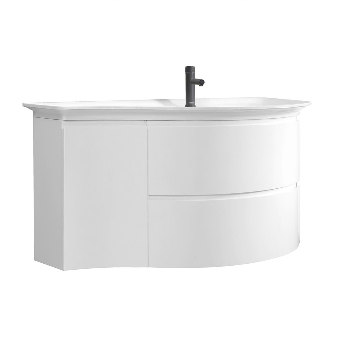 Тумба имеет эргономичный дизайн, создать который позволила новая технология гнутоклееных элементов. Оригинальные конструктивные решения придают коллекции неповторимую уникальность.