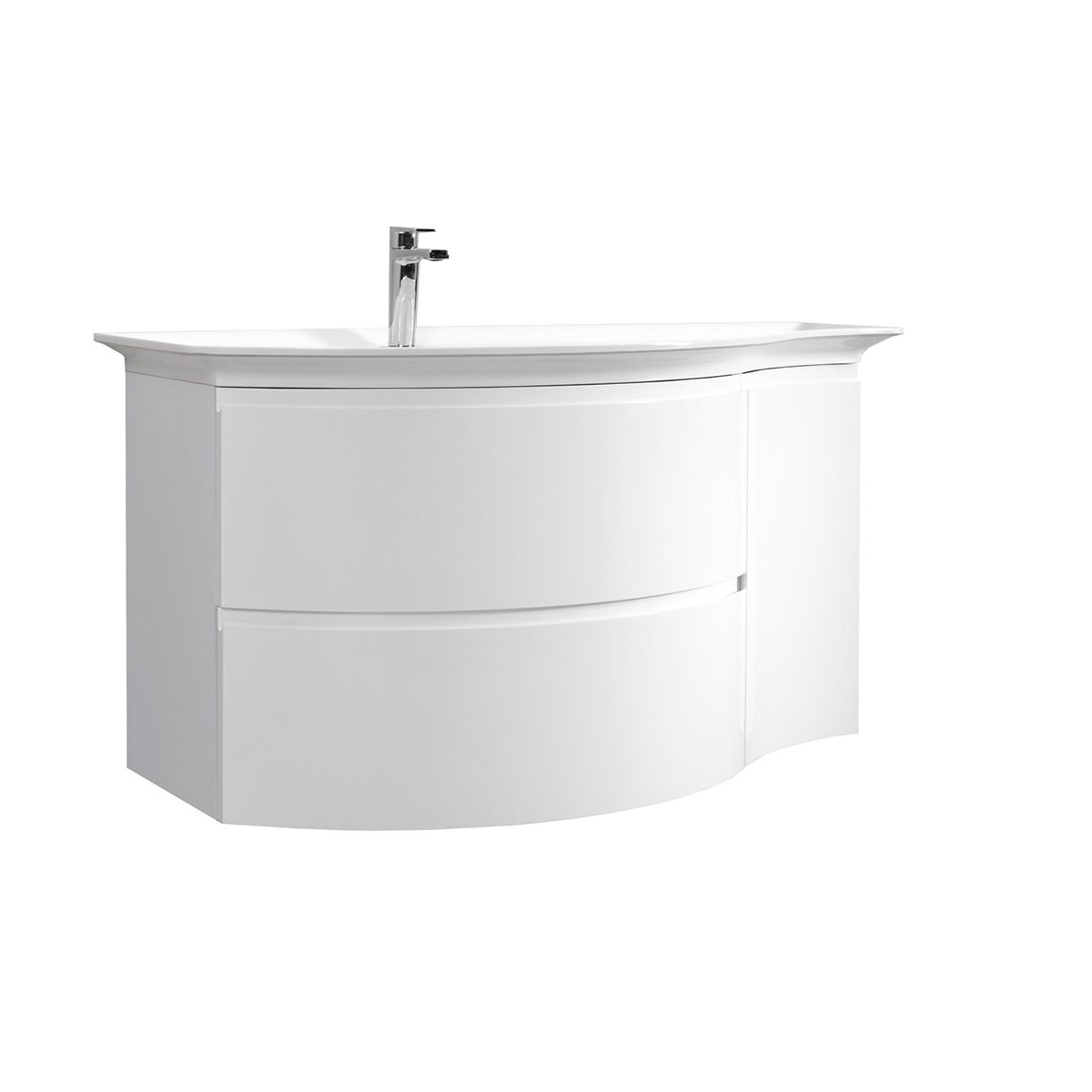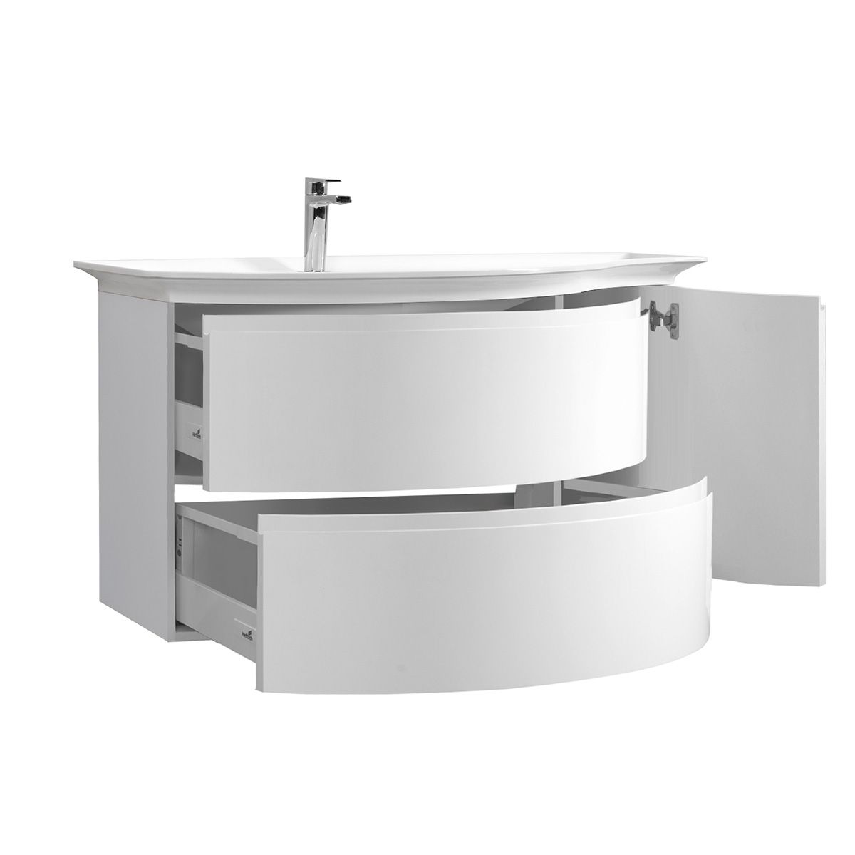 Тумба имеет эргономичный дизайн, создать который позволила новая технология гнутоклееных элементов. Оригинальные конструктивные решения придают коллекции неповторимую уникальность.