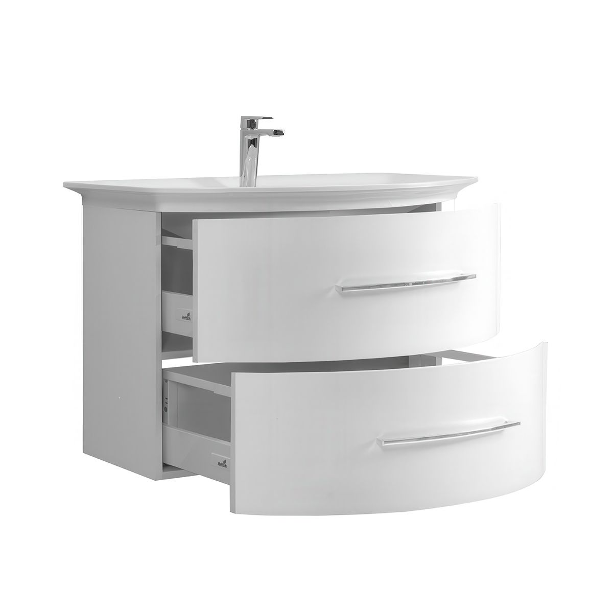 Тумбы и шкафы имеют эргономичный дизайн, создать который позволила новая технология гнутоклееных элементов. Оригинальные конструктивные решения придают коллекции неповторимую уникальность.