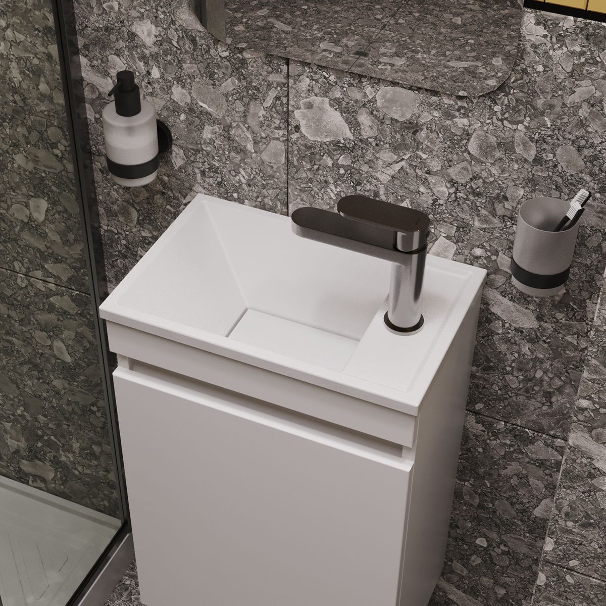 Никакого излишнего декора и правильная прямоугольная форма – такое сочетание будет гармонировать в любом интерьере, вне зависимости от стиля. К тому же за дверцей тумбы можно удачно спрятать с видного места все предметы личной гигиены, и моющие средства.