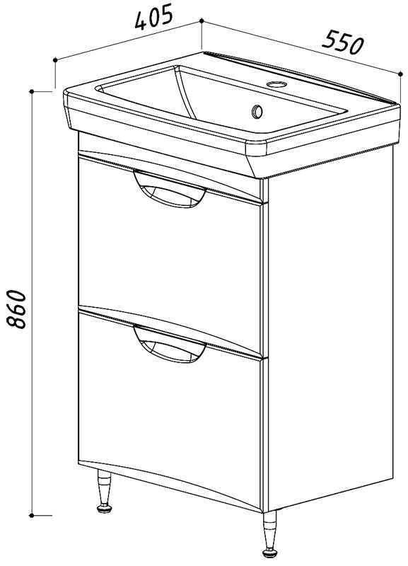 - Ширина изделия с умывальником, см: 55