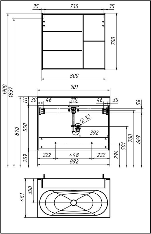 - Глубина изделия с умывальником, см: 48.1