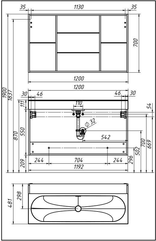 - Совместимый умывальник: Белюкс Стокгольм 1200