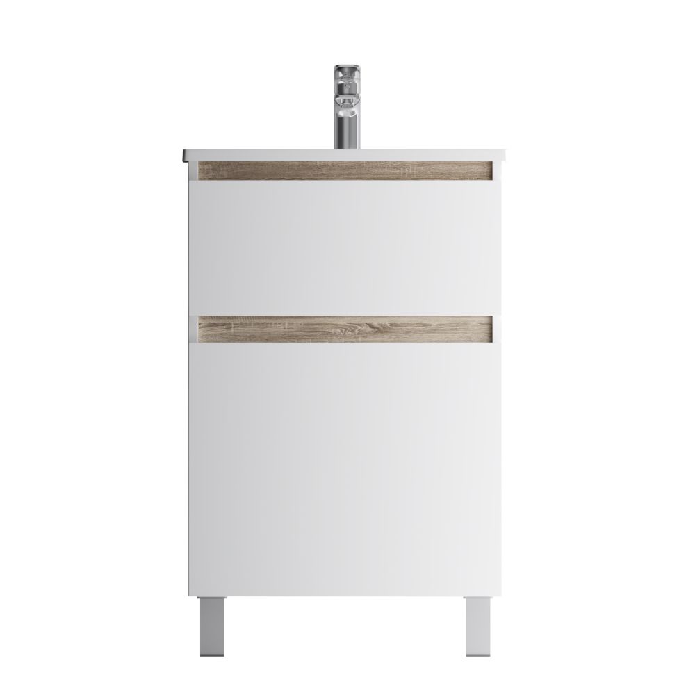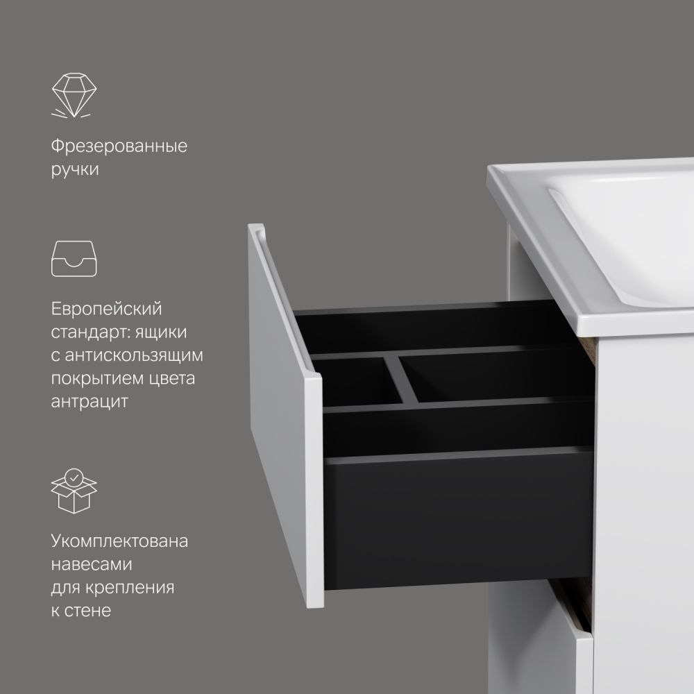цвете Anthracite и имеет противоскользящее покрытие.? Встроенная керамическая раковина белоснежного цвета оснащена специальным бортиком для защиты от пролива воды за мебель.