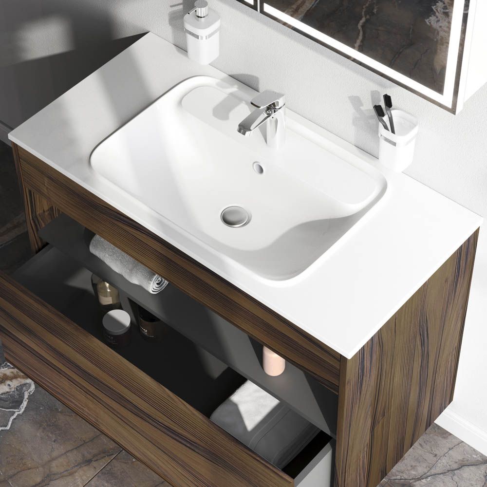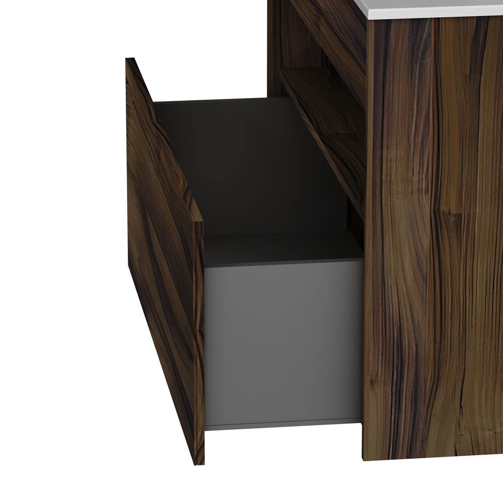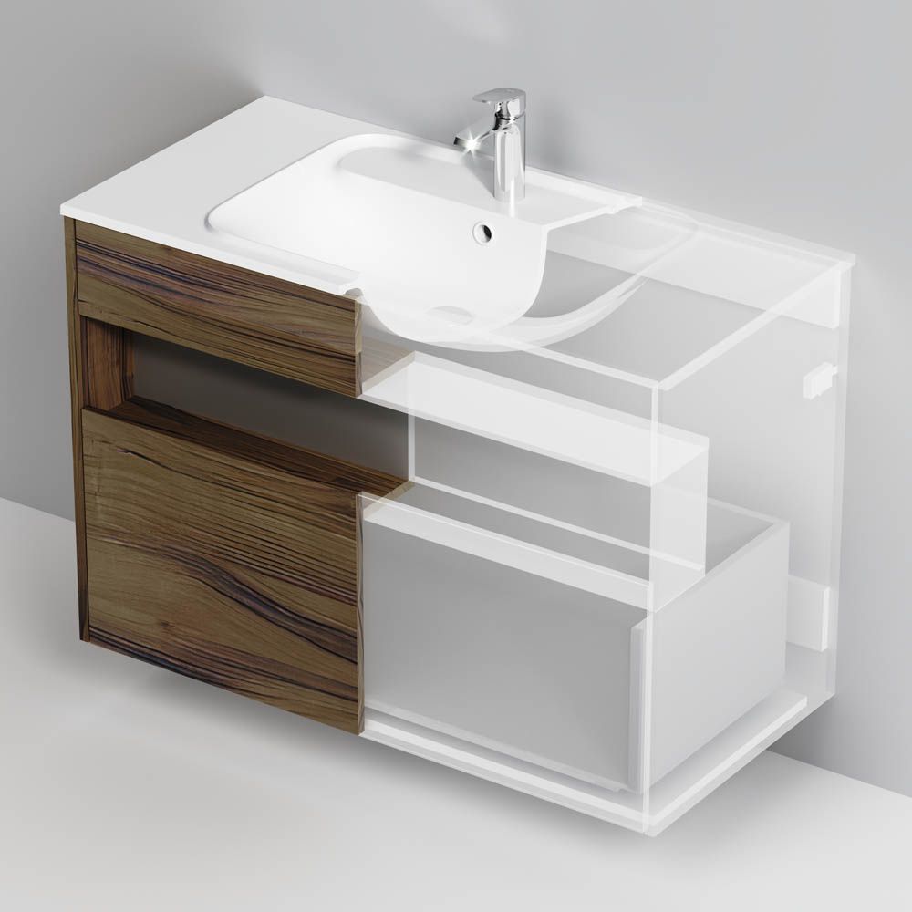 Удобный выдвижной ящик и вместительная открытая ниша позволяют хранить все необходимые средства под рукой. Невероятно мягкое открытие и закрытие благодаря направляющим скрытого монтажа с системой soft close.