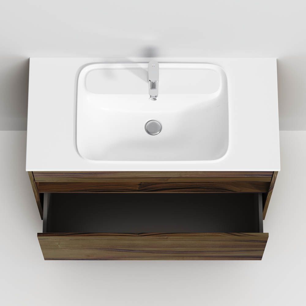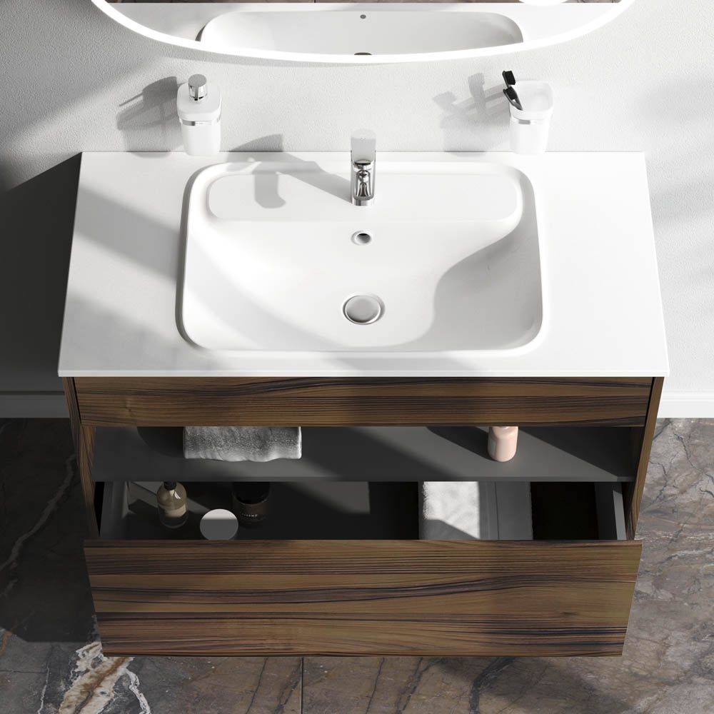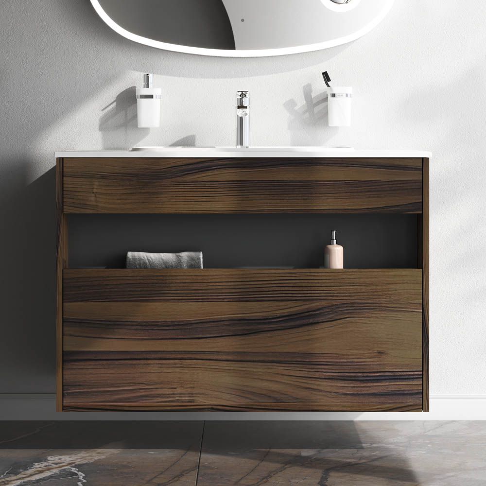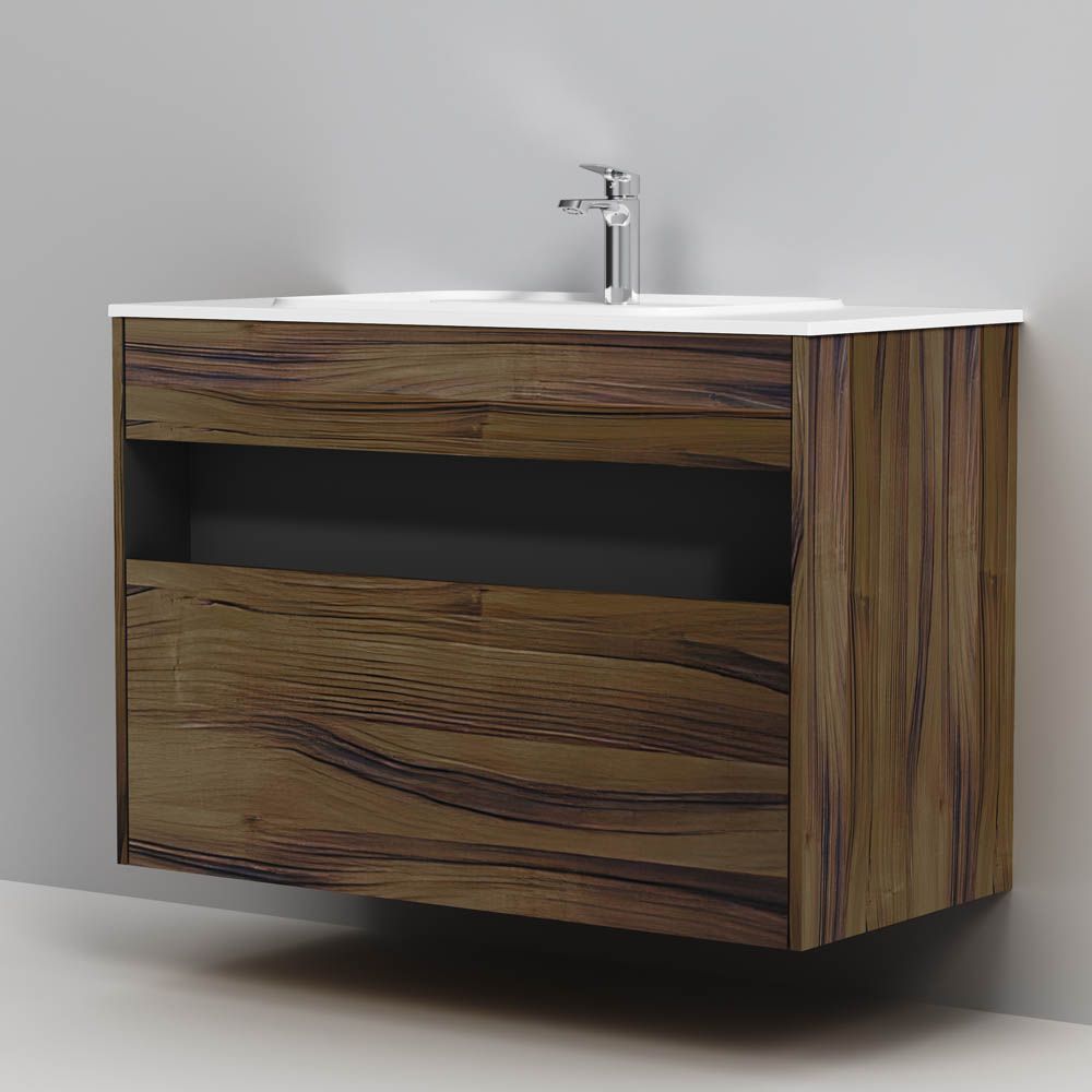 Удобный выдвижной ящик и вместительная открытая ниша позволяют хранить все необходимые средства под рукой. Невероятно мягкое открытие и закрытие благодаря направляющим скрытого монтажа с системой soft close.