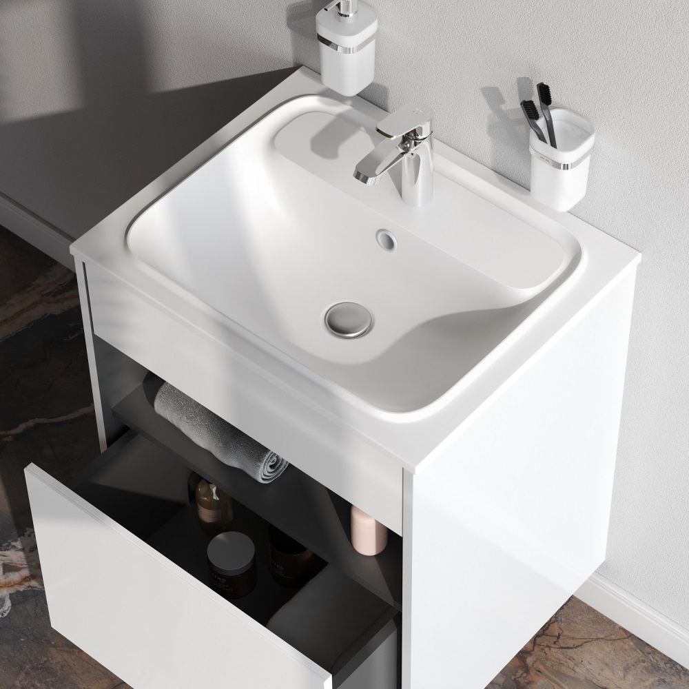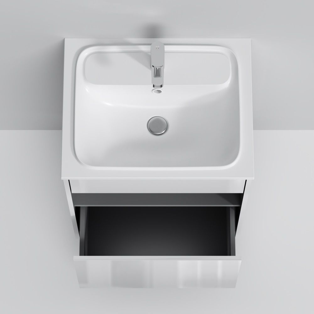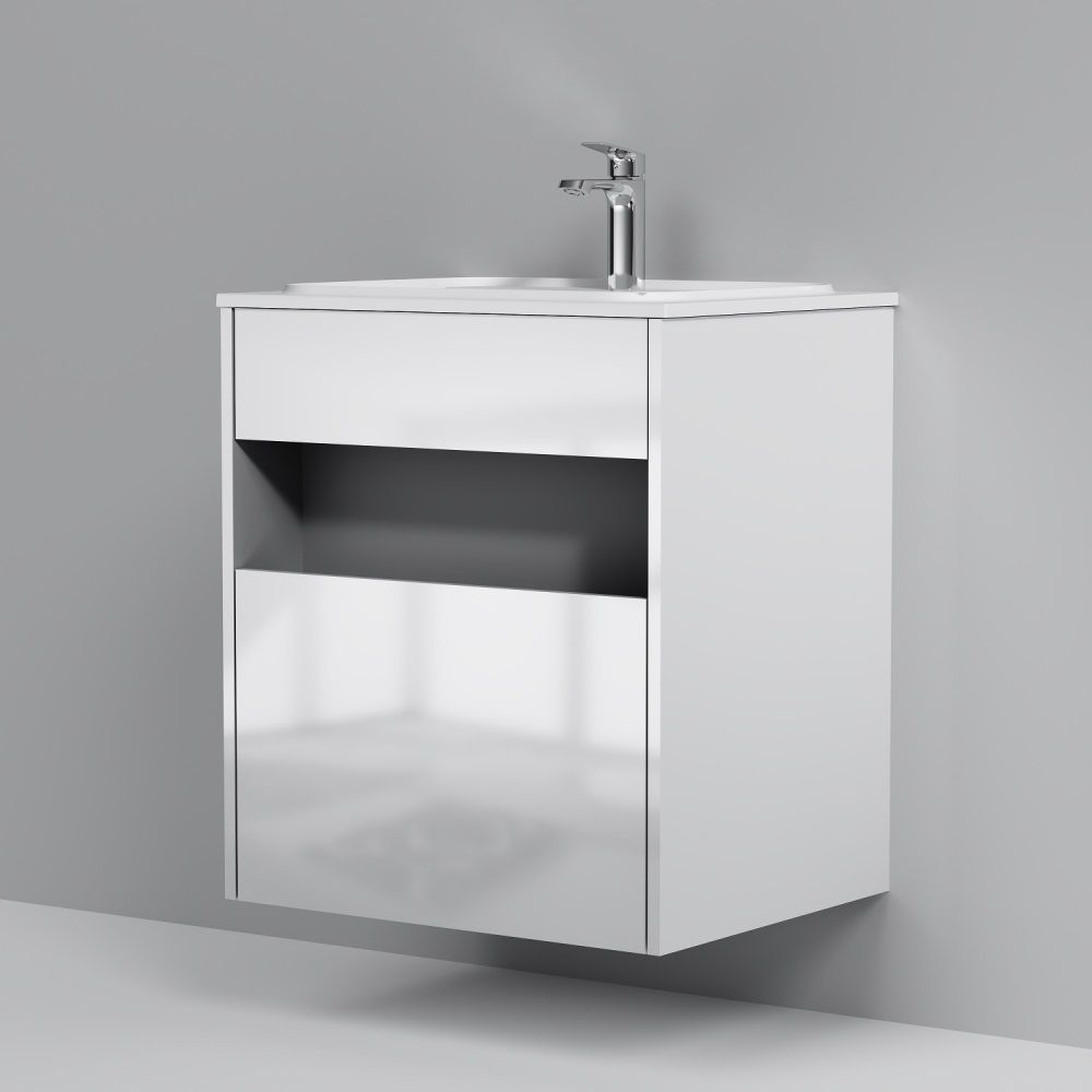 Удобный выдвижной ящик и вместительная открытая ниша позволяют хранить все необходимые средства под рукой. Невероятно мягкое открытие и закрытие благодаря направляющим скрытого монтажа с системой soft close.