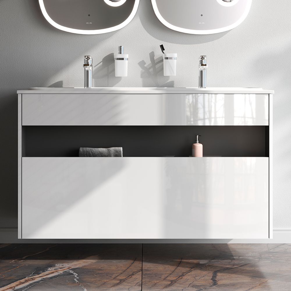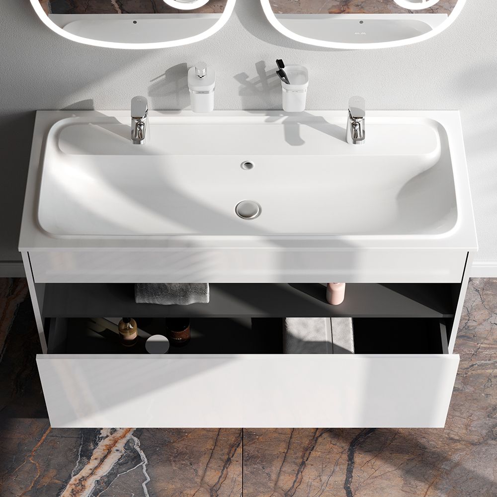 Удобный выдвижной ящик и вместительная открытая ниша позволяют хранить все необходимые средства под рукой. Невероятно мягкое открытие и закрытие благодаря направляющим скрытого монтажа с системой soft close.