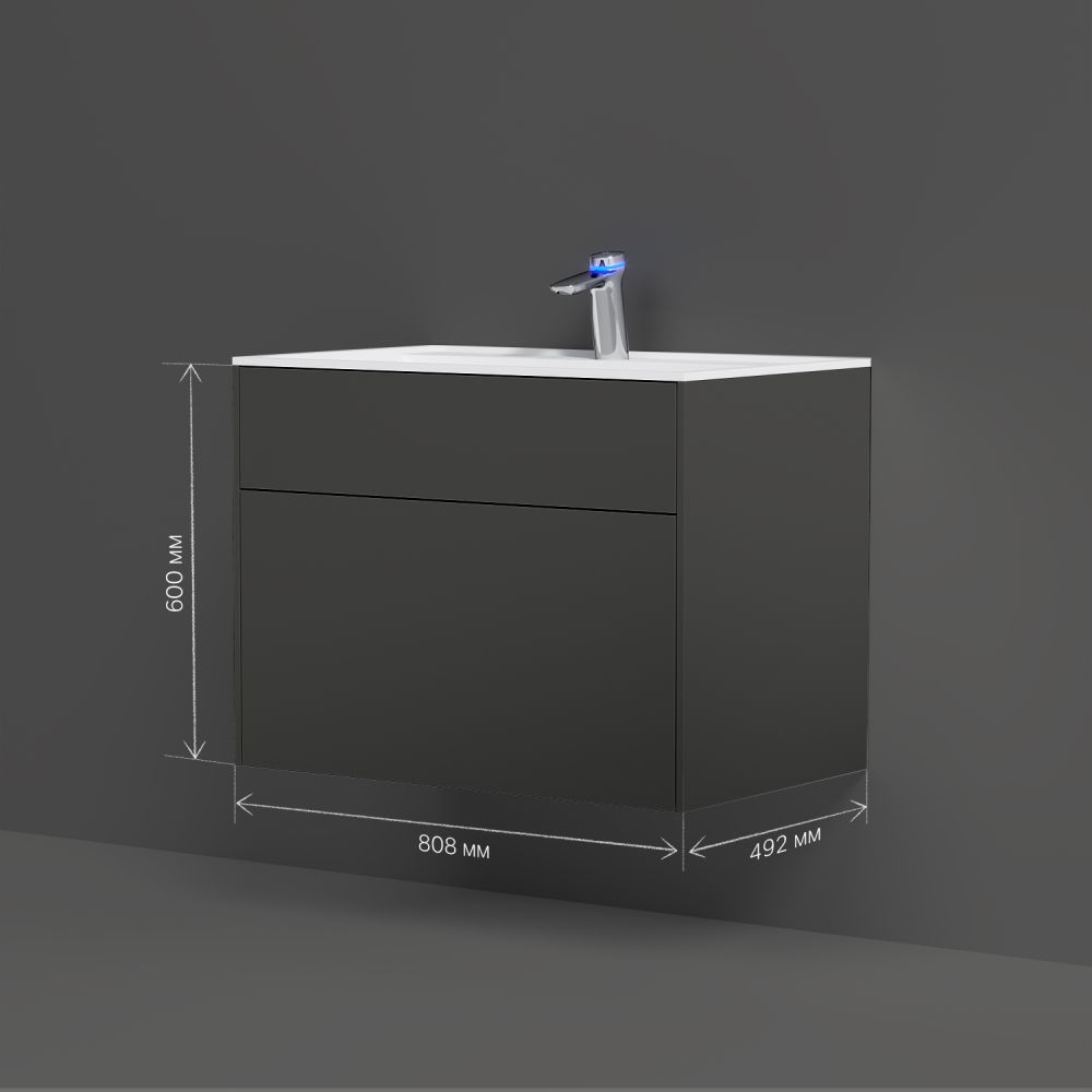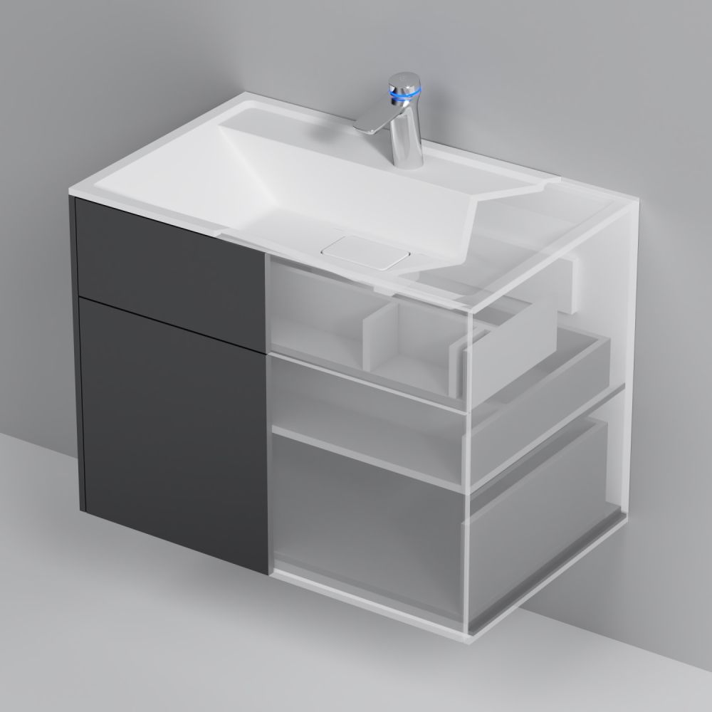Ультратонкая раковина эргономичной формы с покрытием из мрамора идеально сочетается с мебельной базой