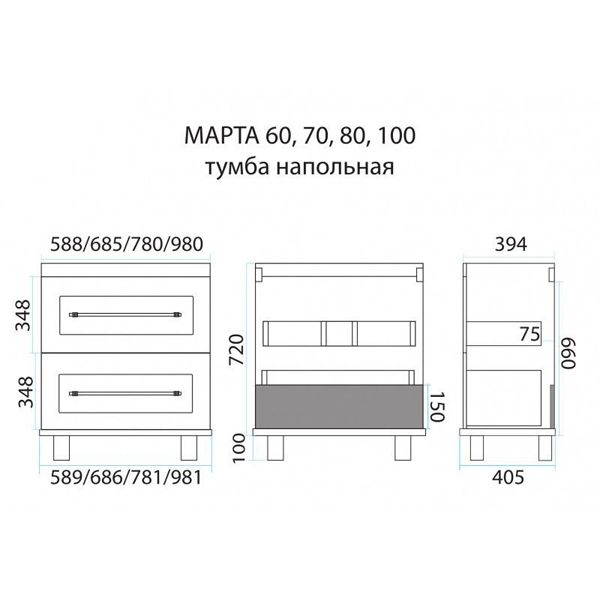 Свойства. Фасад выполнен из МДФ, цвет белый. Каркас Misty Марта 70 напольная белая фактурная П-Мрт01070-012 также выполнен из МДФ. Размеры тумбы (ШхГхВ), см: 70х40.5х85