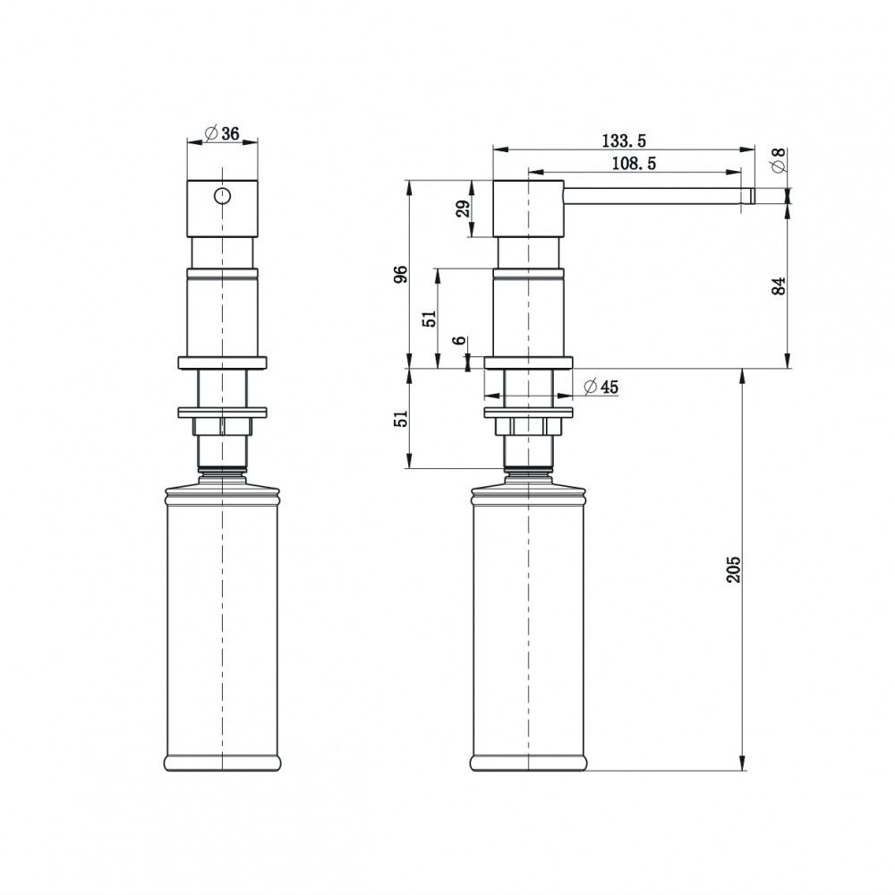 - Оснащение: Диспенсер кухонный, монтажная гайка, емкость для моющего средства, помпа поворотная