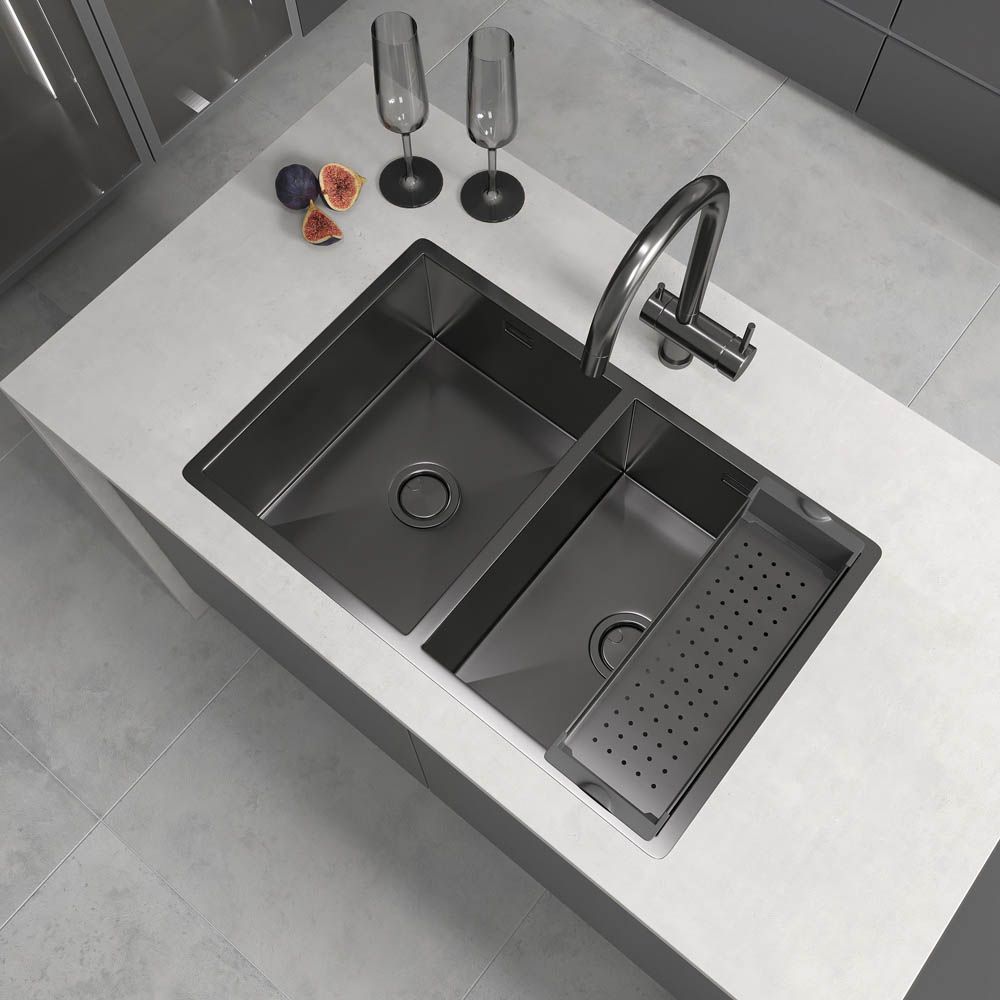- Кухонные мойки: изготавливаются из нержавеющей стали AISI-304 или композитных материалов. Модели отличаются прочностью, функциональностью и разнообразием дизайнов — от классических до современных.