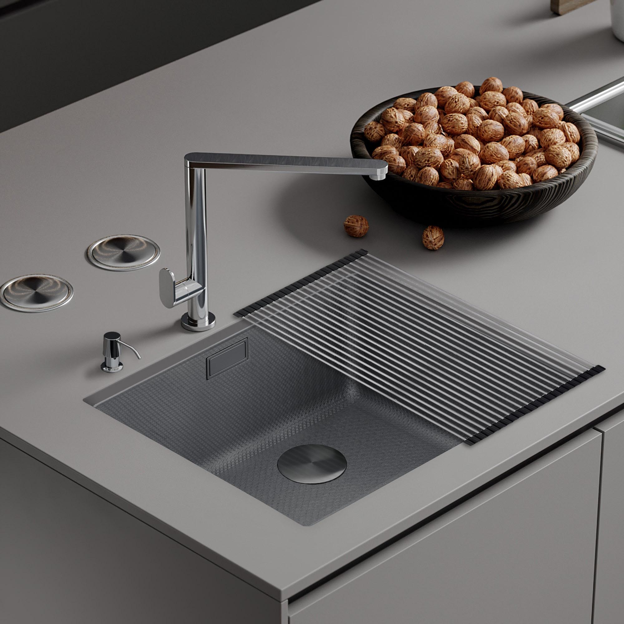 - стальная мойка; - сифон; - корзинчатый вентиль; - декоративная накладка; - дозатор для моющих средств; - ролл-мат; - комплект креплений. |