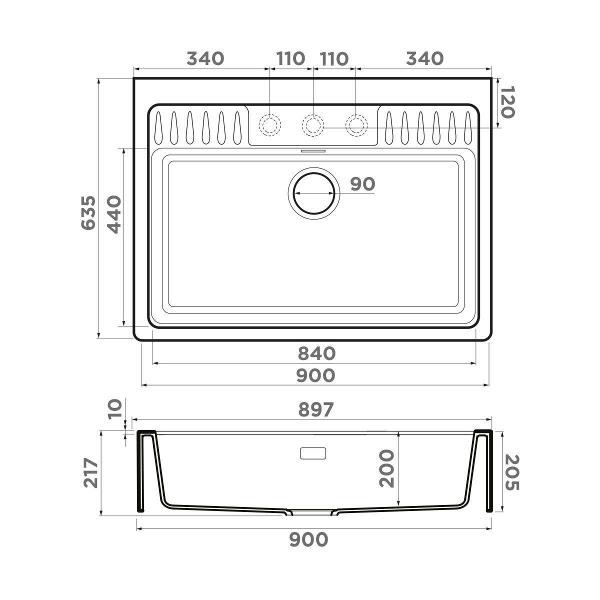 • Материал выдерживает высокие температуры до 280°С (но не стоит ставить на поверхность мойки горячие сковородки и кастрюли, т.к их температура может достигать 500°С);