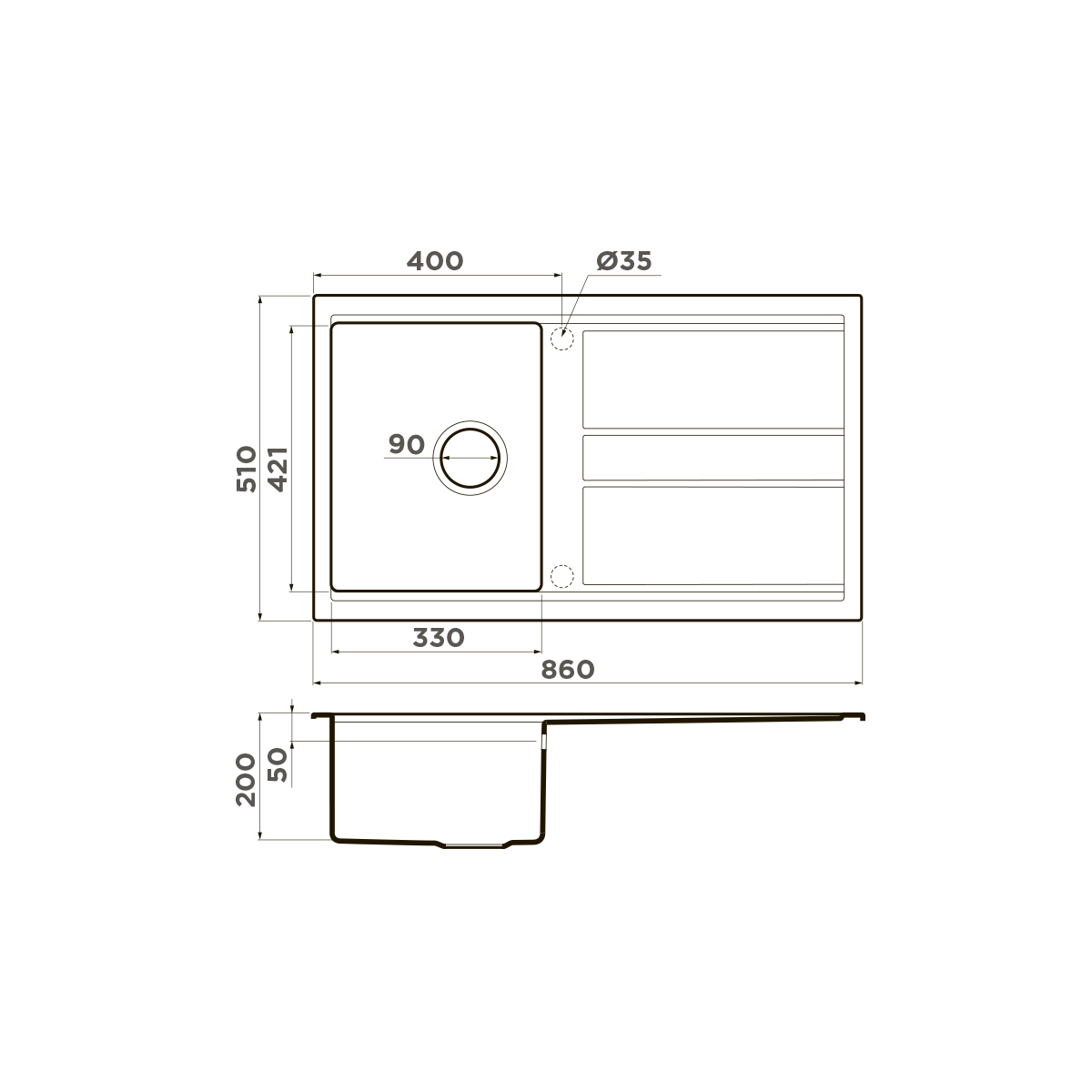 • Материал выдерживает высокие температуры до 280°С (но не стоит ставить на поверхность мойки горячие сковородки и кастрюли, т.к их температура может достигать 500°С);