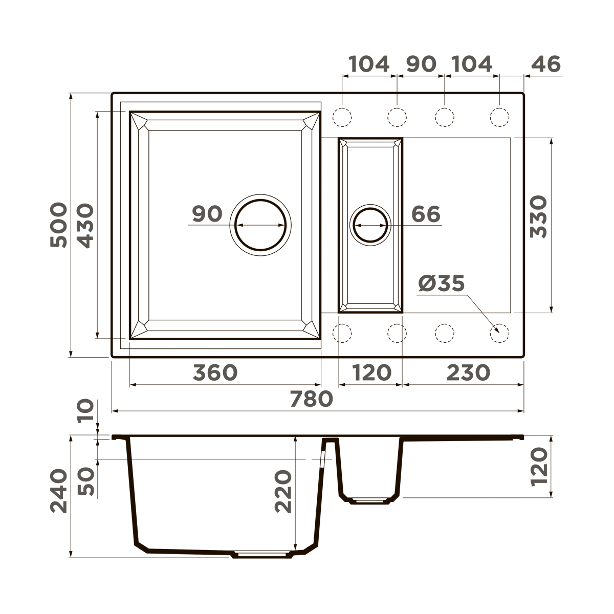 • Материал выдерживает высокие температуры до 280°С (но не стоит ставить на поверхность мойки горячие сковородки и кастрюли, т.к их температура может достигать 500°С).