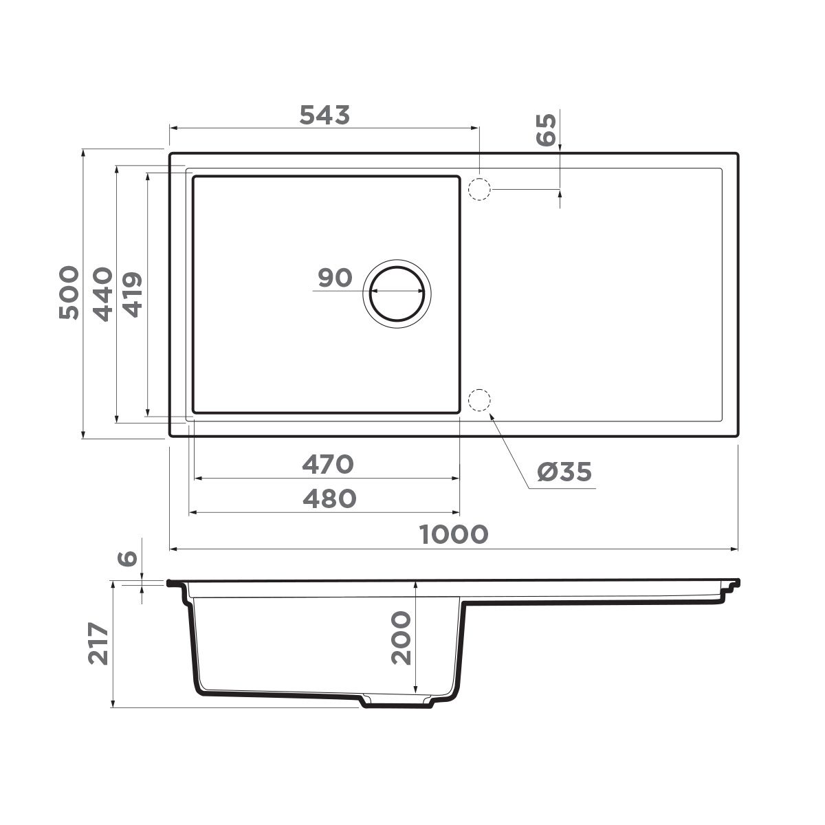 • Материал выдерживает высокие температуры до 280°С (но не стоит ставить на поверхность мойки горячие сковородки и кастрюли, т.к их температура может достигать 500°С);