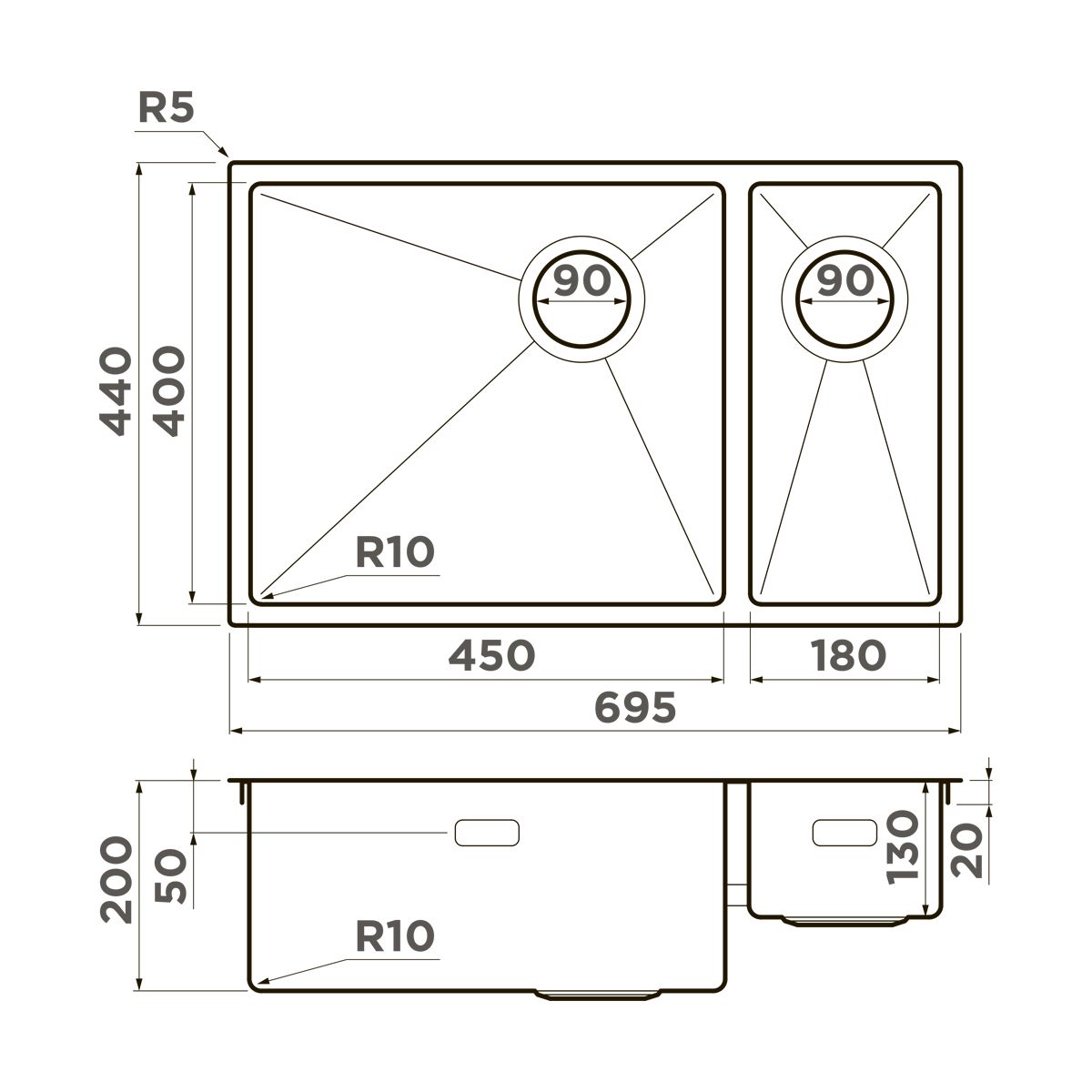 • Ещё одним преимуществом моек OMOIKIRI из нержавеющей стали является наличие шумоподавляющего покрытия, которое состоит из двух компонентов: резиновой накладки на дне и специального противошумного состава;