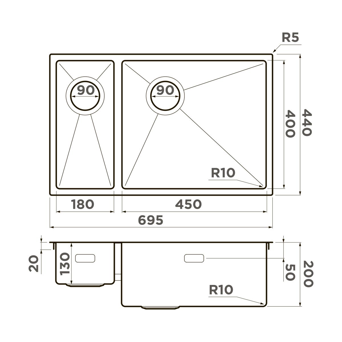 • Самый важный показатель у мойки из нержавеющей стали - толщина стали, ведь чем она тоньше, тем менее твердой, надежной и долговечной будет мойка. Для качественной мойки лучше выбирать толщину выше 0,6 мм. Мойки бренда OMOIKIRI имеют толщину от 0,7 до 1,2 мм;