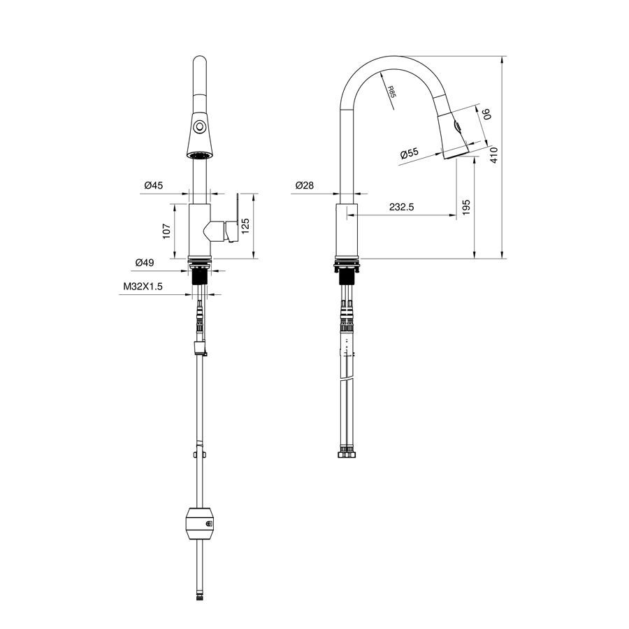 - Гибкая подводка: Да