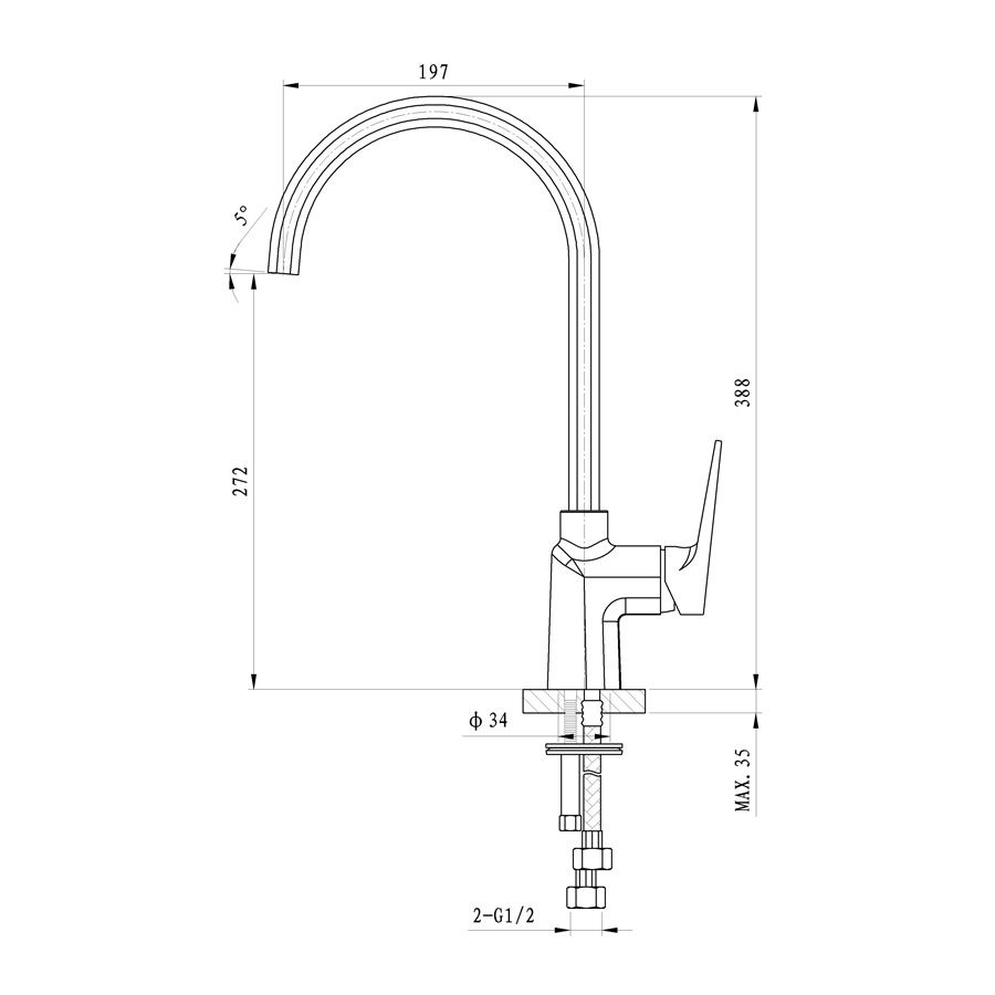 - Стандарт подводки: 1/2"