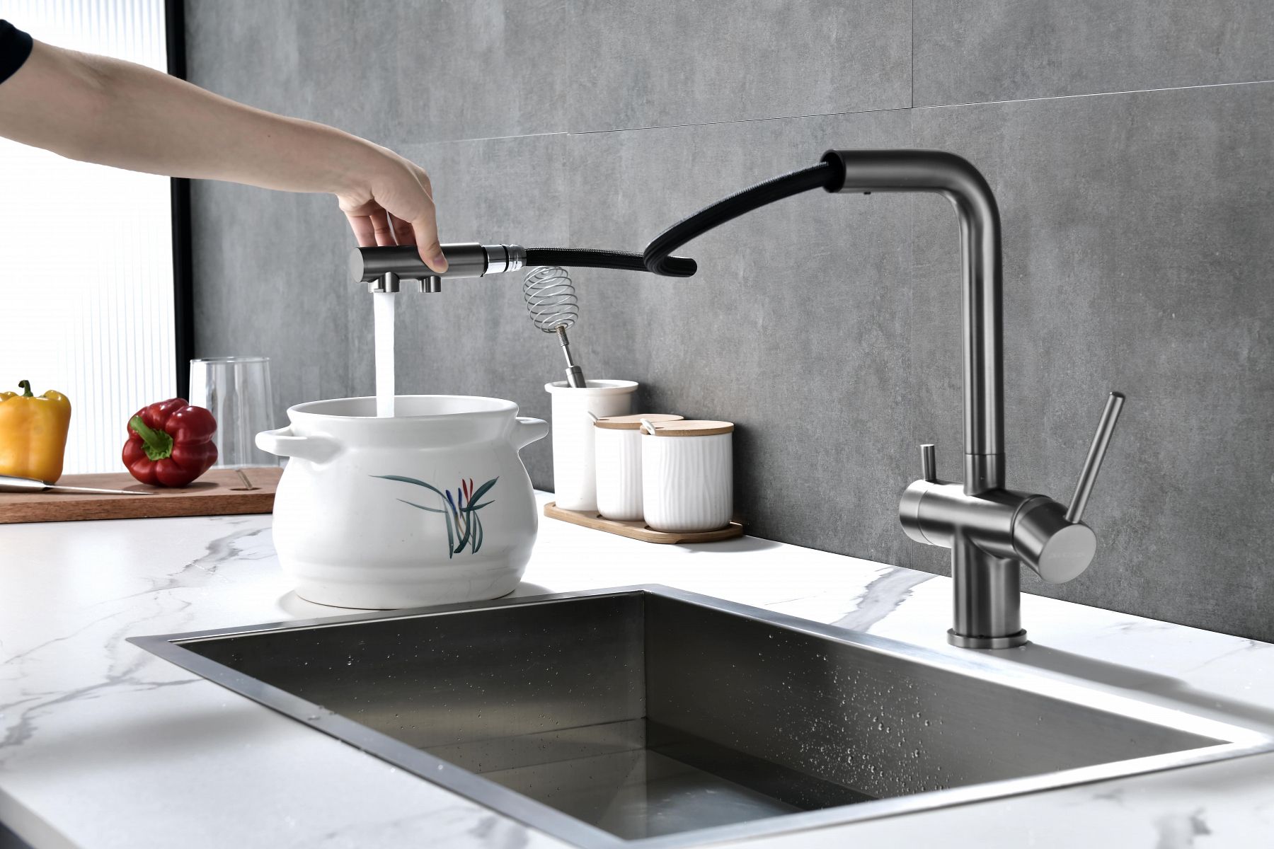 - Излив: выдвижной, гибкий, поворотный