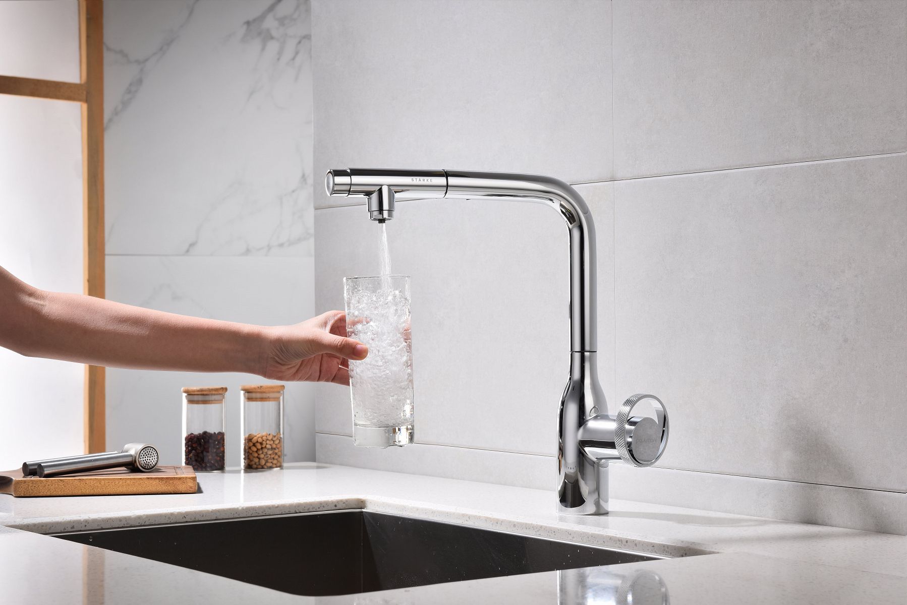 Кухня – самая важная комната для каждой хозяйки, поэтому все оборудование должно быть удобным и практичным. Кухонный смеситель – необходимый элемент каждой кухни. При выборе смесителя стоит уделить внимание габаритным размерам (особенно высоте смесителя), типу открывания, а также дополнительным опциям: возможность подключения к фильтру для очистки воды, наличие выдвижного или гибкого излива для более комфортного мытья больших кастрюль и противней.
