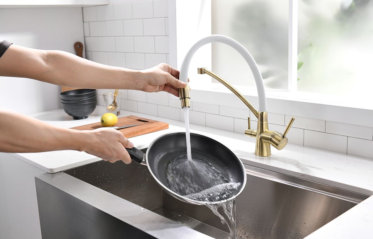 Кухня – самая важная комната для каждой хозяйки, поэтому все оборудование должно быть удобным и практичным. Кухонный смеситель – необходимый элемент каждой кухни. При выборе смесителя стоит уделить внимание габаритным размерам (особенно высоте смесителя), типу открывания, а также дополнительным опциям: возможность подключения к фильтру для очистки воды, наличие выдвижного или гибкого излива для более комфортного мытья больших кастрюль и противней.