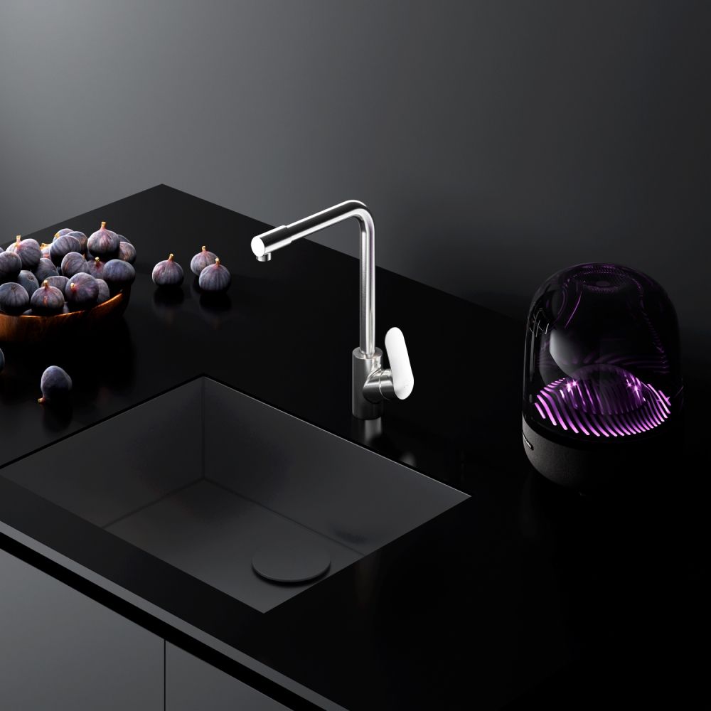 Смеситель оснащен встроенным каналом для питьевой воды. Благодаря прогрессивной технологии Fresh Boost при вращении ручки на 90 градусов вы можете наслаждаться чистой питьевой водой. Для получения обычной воды просто управляйте смесителем привычным способом.