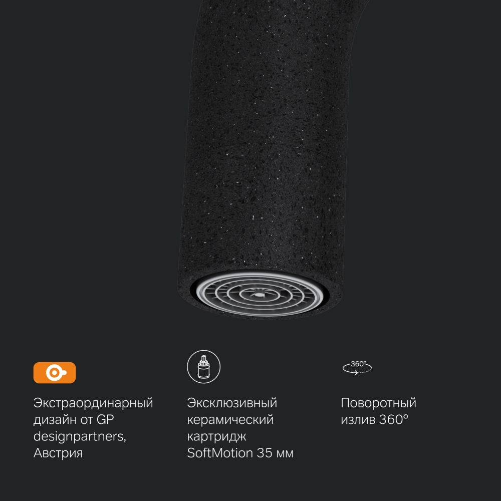 Максимальный комфорт: плавное вращение излива обеспечивает непревзойденное удовольствие от использования и удобство в работе на кухне.