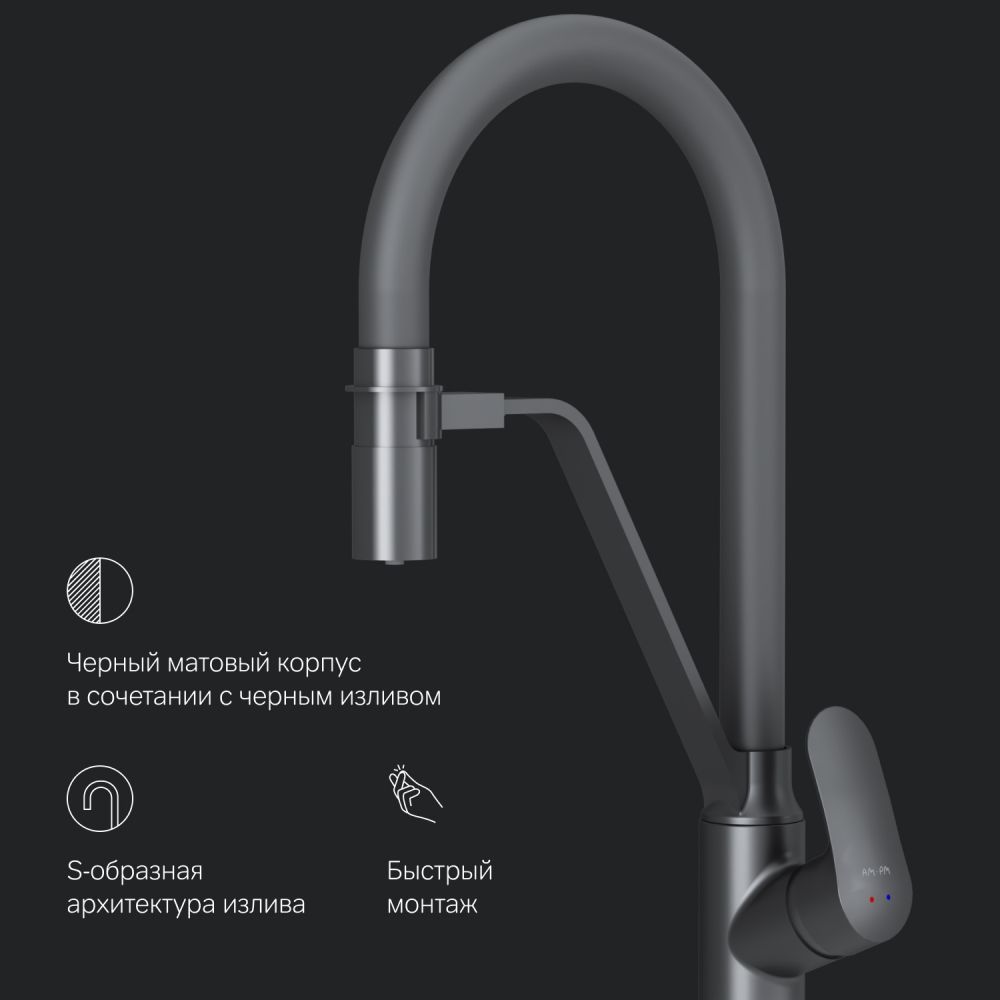 Эксклюзивная разработка для АМ.РМ: специально спроектированный керамический картридж SoftMotion 35 мм обеспечивает низкий уровень шума выдерживает любые перепады давления в водопроводной сети. ""