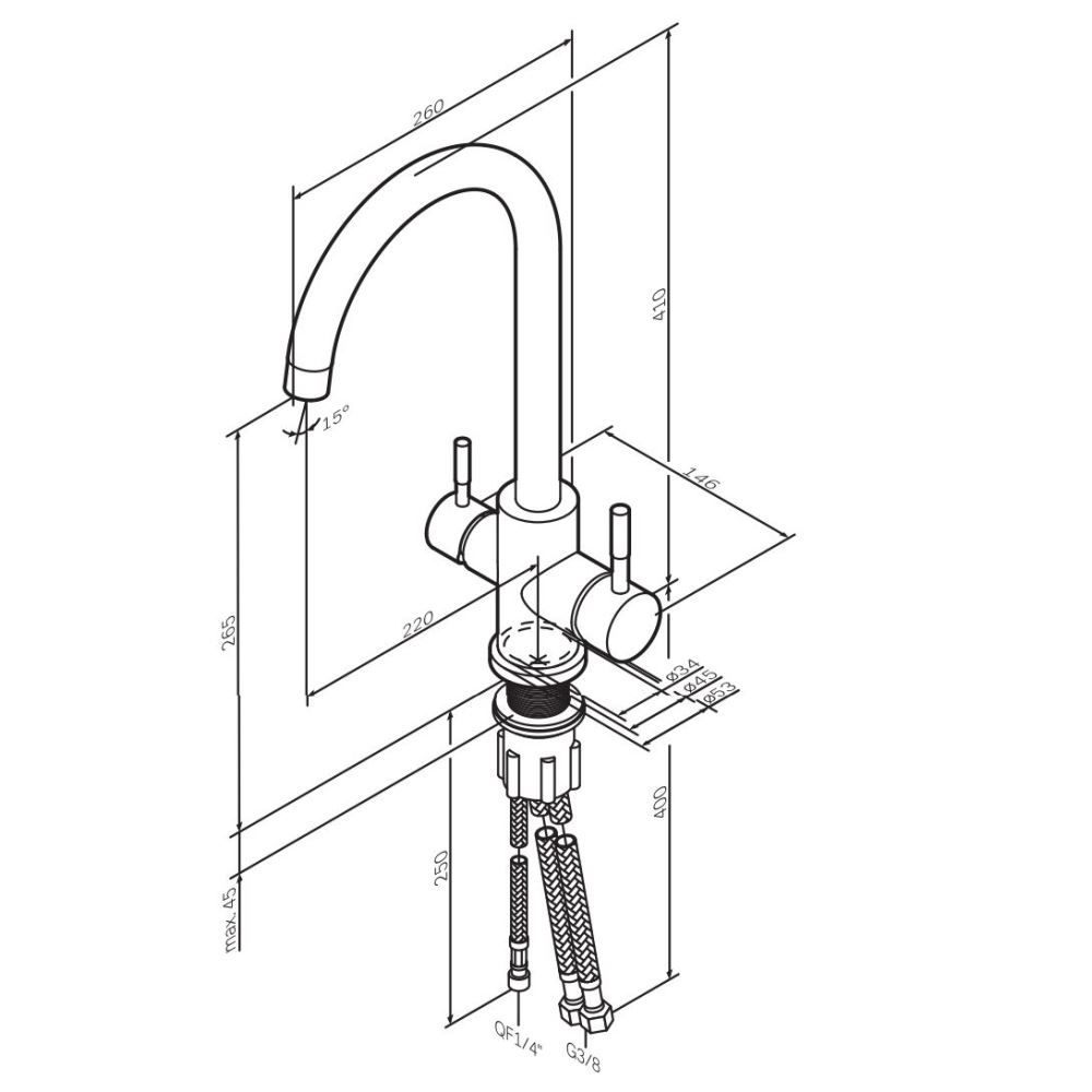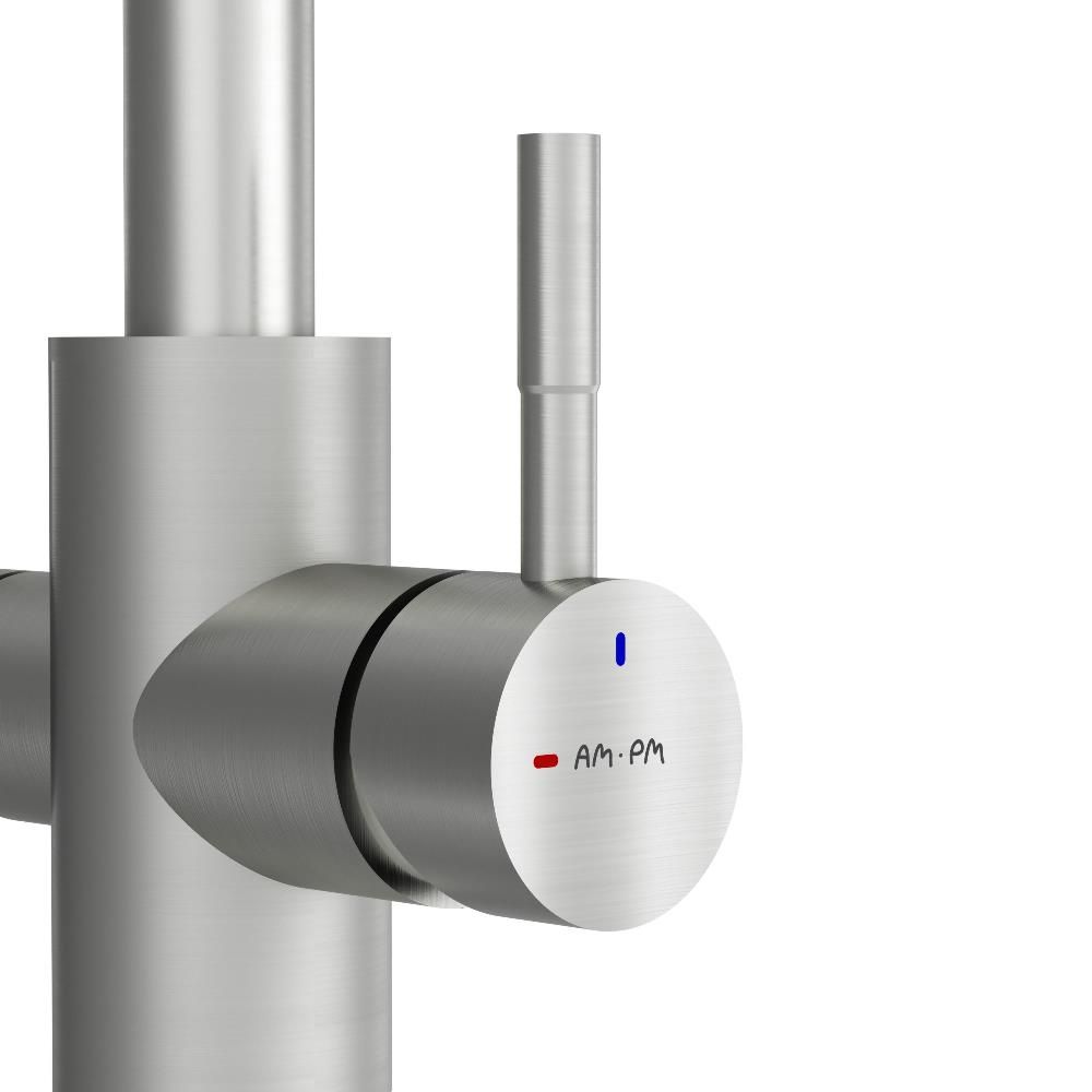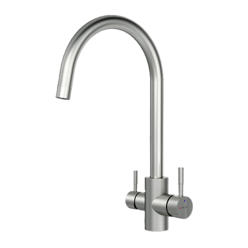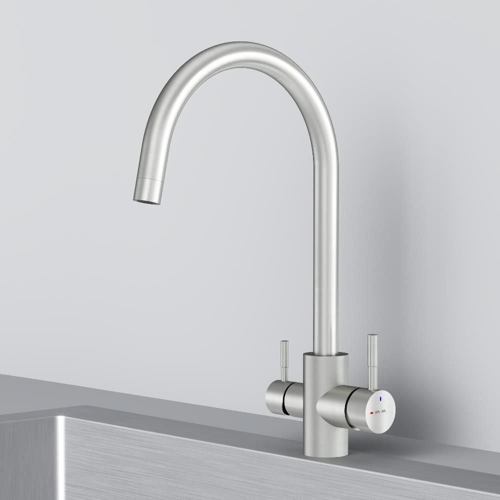Смеситель оснащен встроенным каналом для питьевой воды. Для получения питьевой воды воспользуйтесь ручкой расположенной с левой стороны корпуса для получения обычной воды просто управляйте смесителем привычным способом.