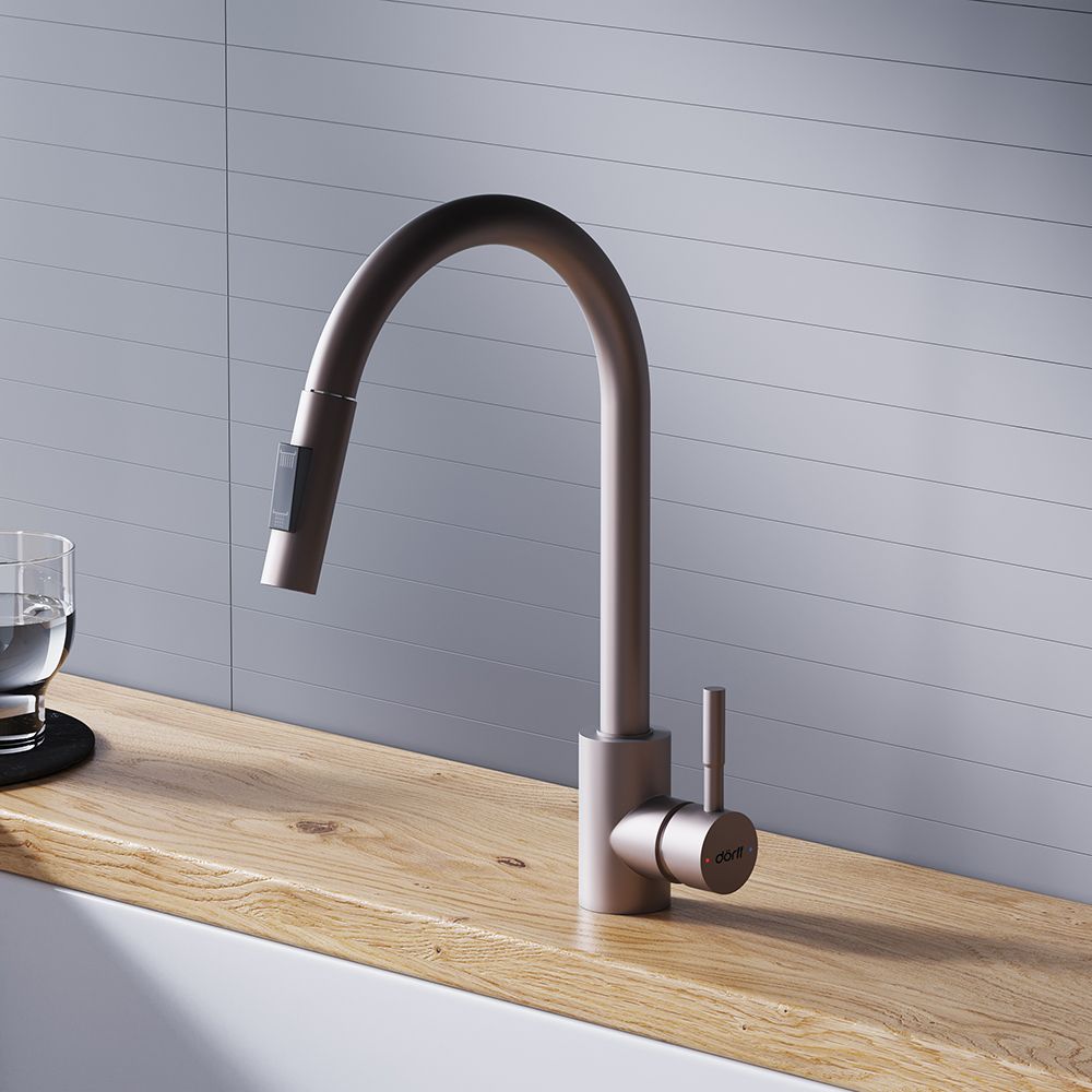 Утонченный элегантный дизайн сохранит свою актуальность на долгие годы и останется украшением на вашей кухне. Матовое покрытие в цвете Сатин - никаких разводов и следов капель безупречный внешний вид смесителя всегда. Удобная эргономичная ручка-стик обеспечивает легкое управление напором воды в одно касание.