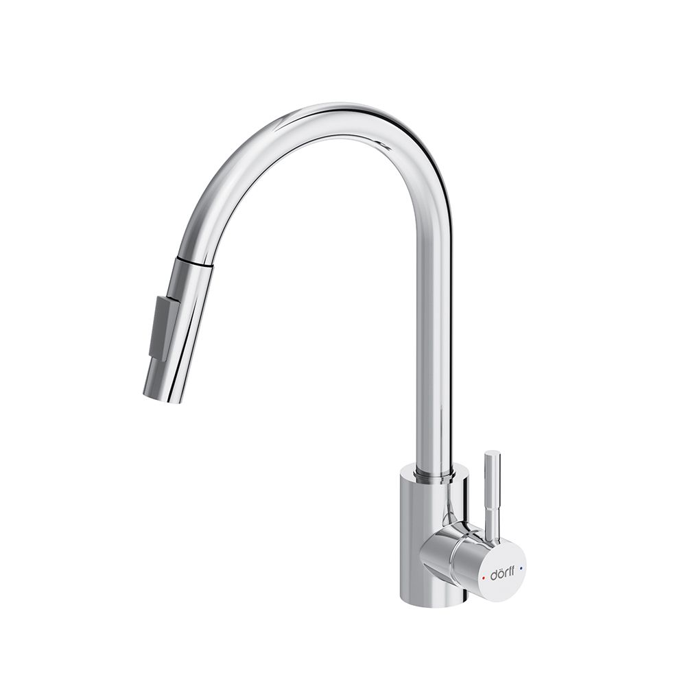 Утонченный элегантный дизайн сохранит свою актуальность на долгие годы и останется украшением на вашей кухне. Удобная эргономичная ручка-стик обеспечивает легкое управление напором воды в одно касание.