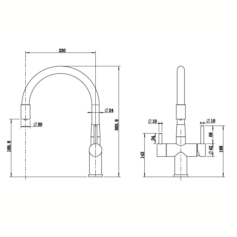 Поворотный, С возможностью подключения к фильтру, Гибкий |