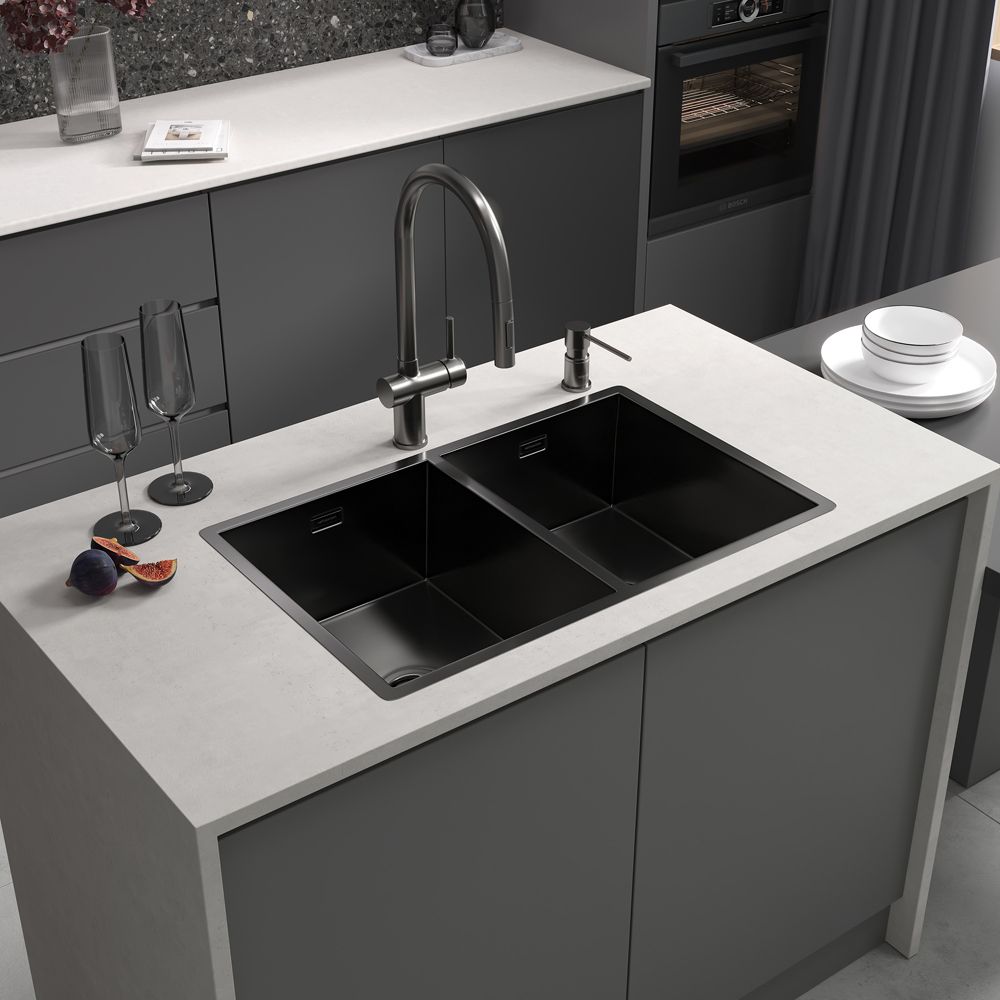 - Кухонные мойки: изготавливаются из нержавеющей стали AISI-304 или композитных материалов. Модели отличаются прочностью, функциональностью и разнообразием дизайнов — от классических до современных.