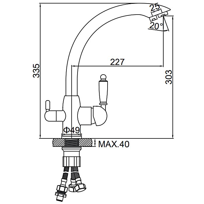 Свойства. Артикул: L4455-3; Гарантийный срок: 1 год; Назначение: Для кухни; Управление: Однорычажные; Форма смесителя: Округлые; Стиль: Современные; Цвет: Хром; Высота излива: Высокий; Функции излива: Поворотный; Размер излива: Средний; Способ монтажа: На одно отверстие, На гайке; Тип подводки: Гибкая подводка; Система быстрого монтажа: Нет; Присоединительный размер: 1/2; Особенности: Со встроенным фильтром, С аэратором; Материал: Латунь; В комплекте: Гибкая подводка 1/2.