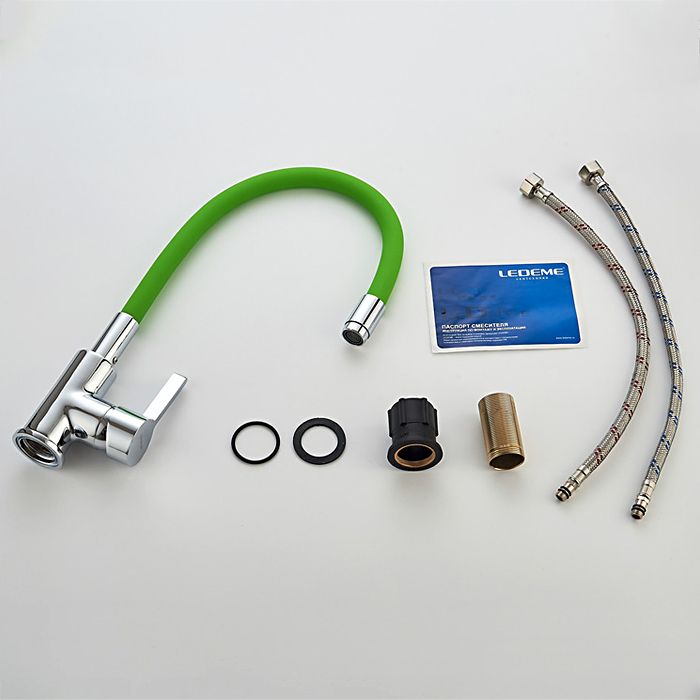 Свойства. Артикул: L4898-5; Коллекция: Rainbow; Гарантийный срок: 1 год; Страна: Китай; Назначение: Для кухни; Управление: Однорычажные; Стиль: Современные; Цвет: Хром, Зеленые; Высота излива: Высокий; Функции излива: С гибким изливом, Поворотный; Способ монтажа: На одно отверстие, На гайке; Тип подводки: Гибкая подводка; Тип картриджа: Керамический 35 мм; Система быстрого монтажа: Нет; Присоединительный размер: 1/2; Особенности: С аэратором; Материал: Латунь.