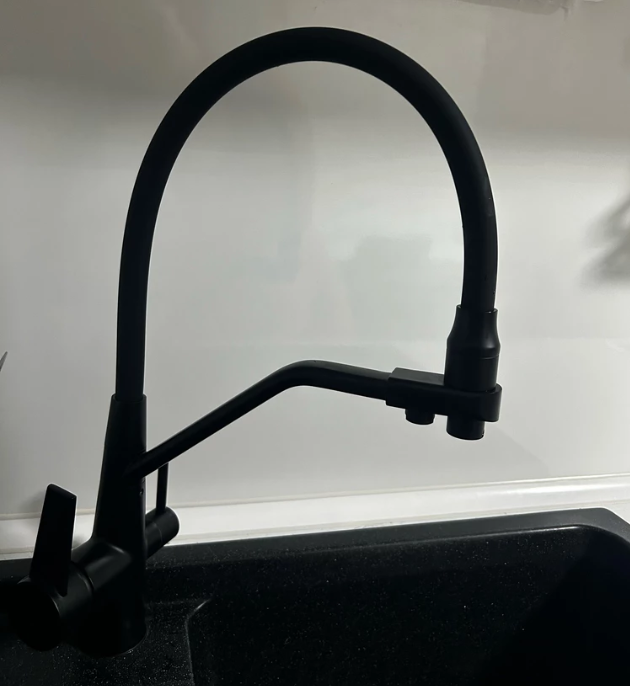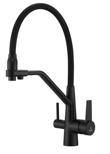 Смеситель для кухни Rose R558H из латуни оснащён гибким изливом в черном цвете, с подключением к фильтру. Модель имеет аэратор Neoperl (пр-во Швейцария), который формирует ровный поток воды без брызг и значительно сокращает расход воды, а также керамический картридж, выдерживающий высокие нагрузки и обеспечивающий максимально комфортную и бесшумную работу.