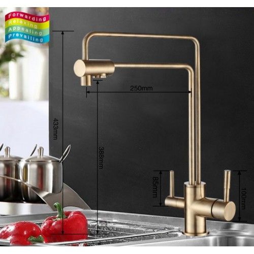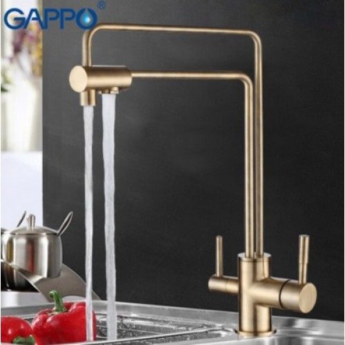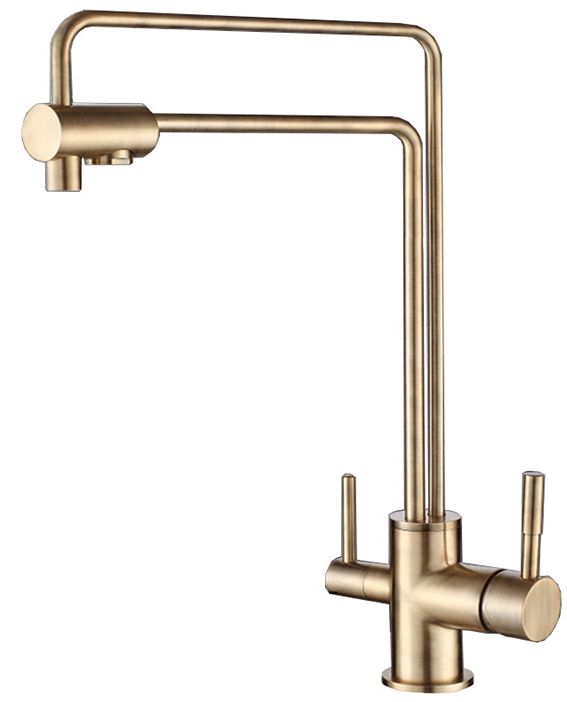 Cмеситель для кухонной мойки Gappo G4398-6 под фильтр с краном для питьевой воды и поворотным изливом, цвет бронза, материал латунь.