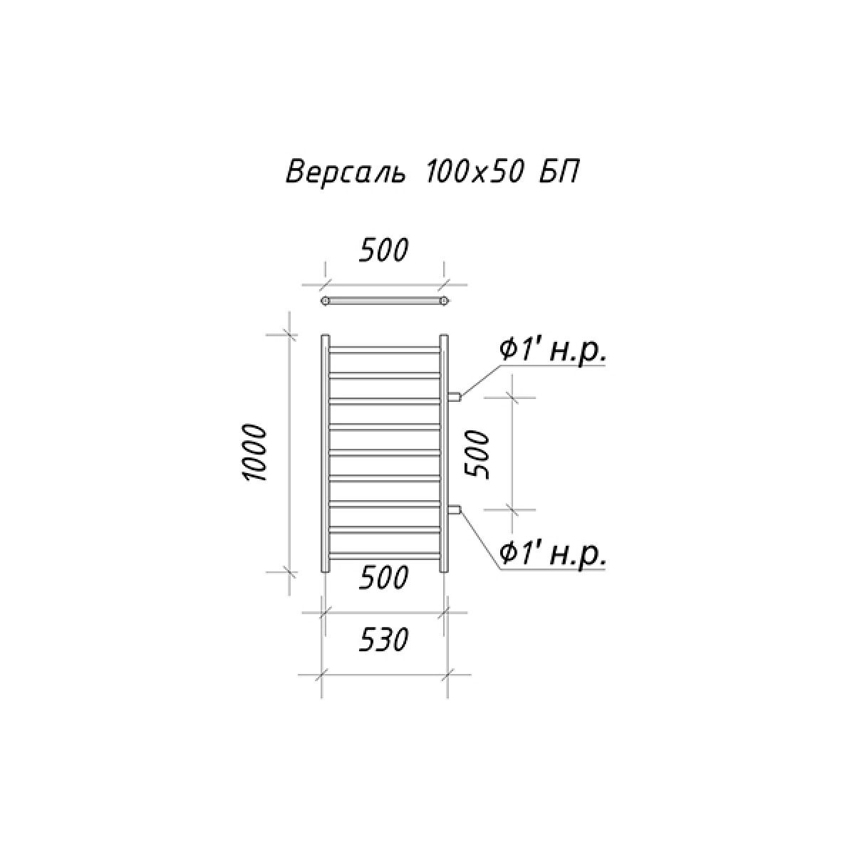 Цвет: черный матовый. Подключение боковое, посадочный диаметр 1 дюйм, межцентровое расстояние 500мм. Количество перекладин 9.