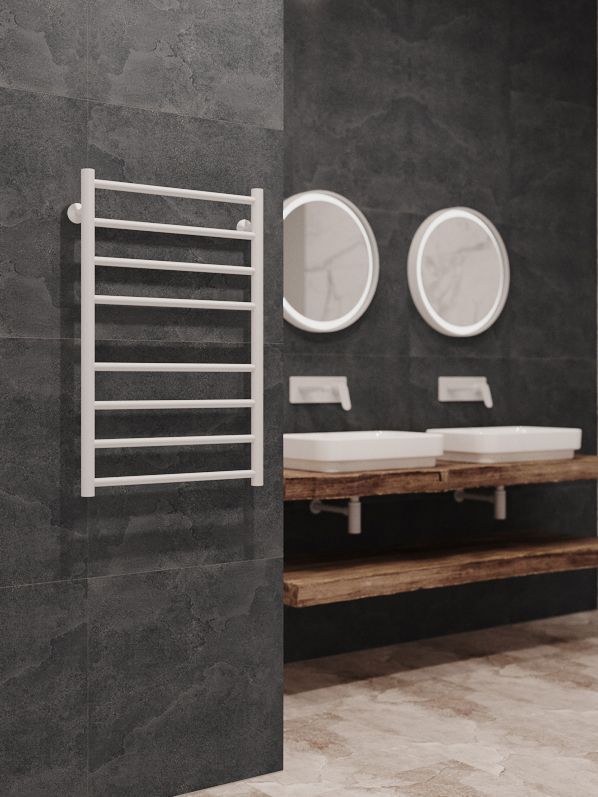 Полотенцесушитель водяной Stinox Toscana 500x800, нижнее подключение, белый матовый, 1" НР (наружная резьба), 8 перекладин