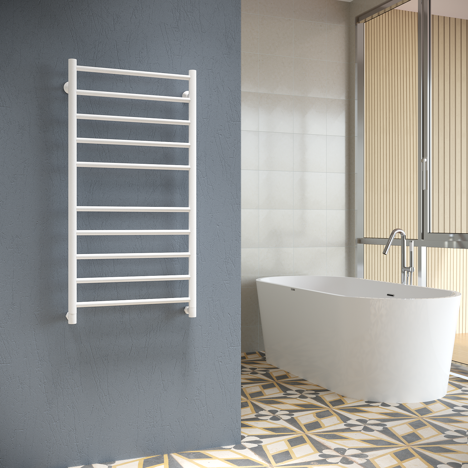 Полотенцесушитель водяной Stinox Toscana 500x1000, нижнее подключение, белый матовый, 1" НР (наружная резьба), 10 перекладин