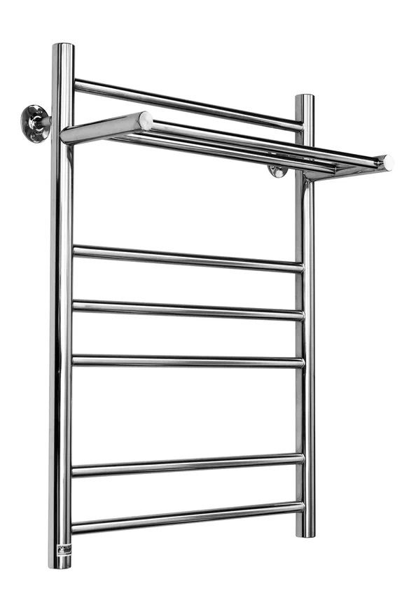 Свойства. Размер (межосевое x длина) мм: 500х700; Количество перекладин, шт: 8; Материал: Нержавеющая сталь; Диаметр подключения, дюйм: 1; Тип подключения: Нижнее; Цвет: Хром; Форма: Лесенка; Тип: Водяной; Полочка: Да; Гарантия, лет: 5.