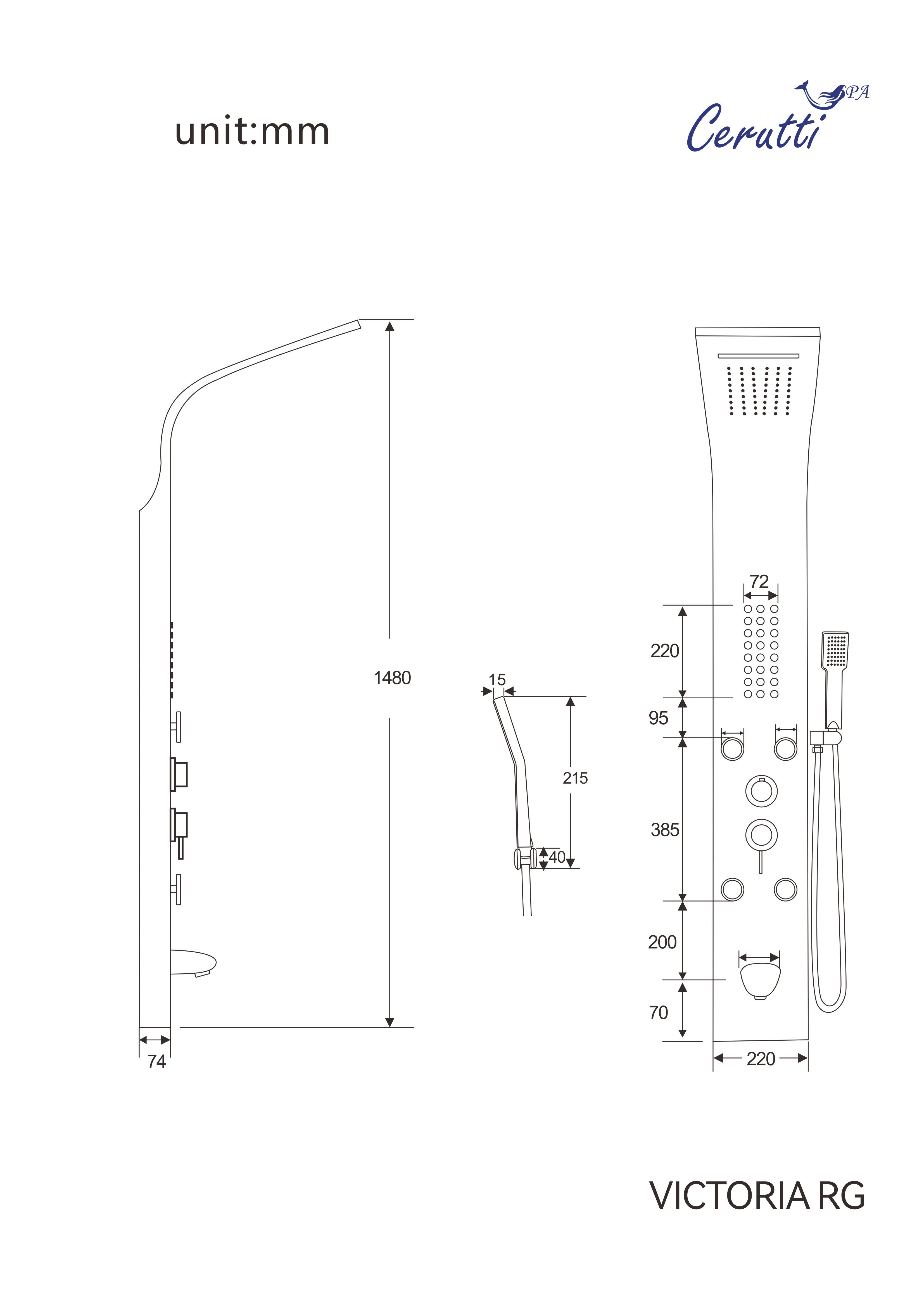 Удобная и многофункциональная душевая панель VICTORIA RG предназначена для установки внутри душевых уголков, ограждений, а также совместно с ванной.