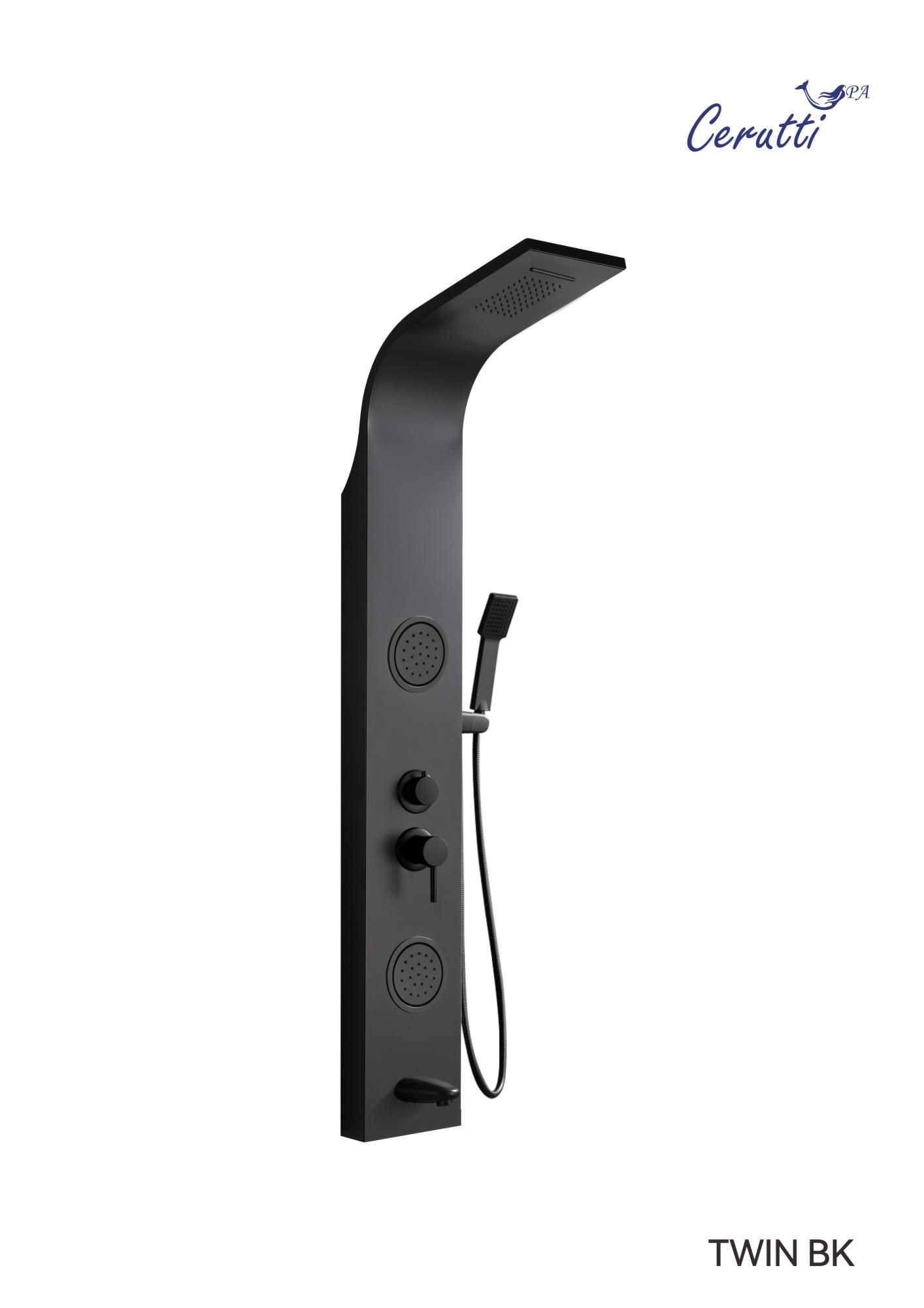 Удобная и многофункциональная душевая панель TWIN BK предназначена для установки внутри душевых уголков, ограждений, а также совместно с ванной.